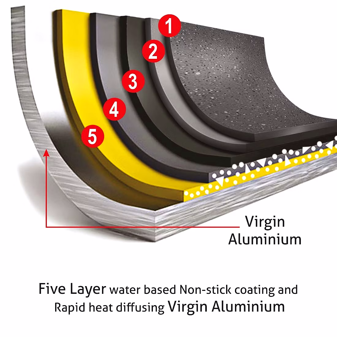 - PFOA Free 5 Layer Water Based Non-Stick Coating.