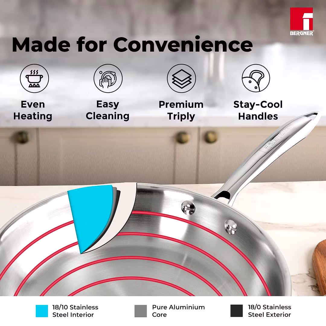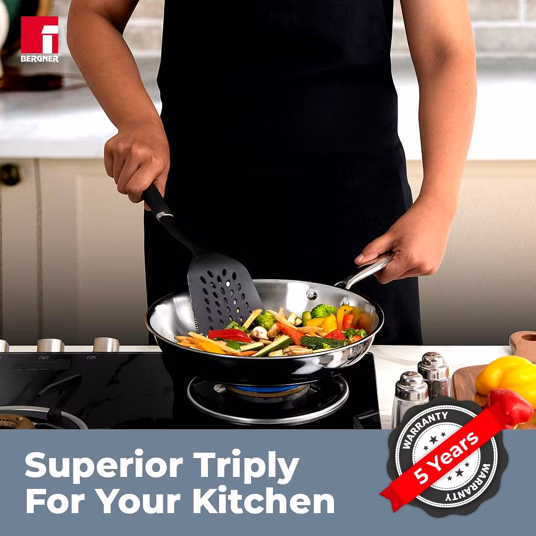 Less Oil Use & Low Flame Cooking : The triply material heats evenly and reduces hot spots, preventing food from burning or sticking. This allows you to use less oil while still achieving a non-stick effect for healthier cooking