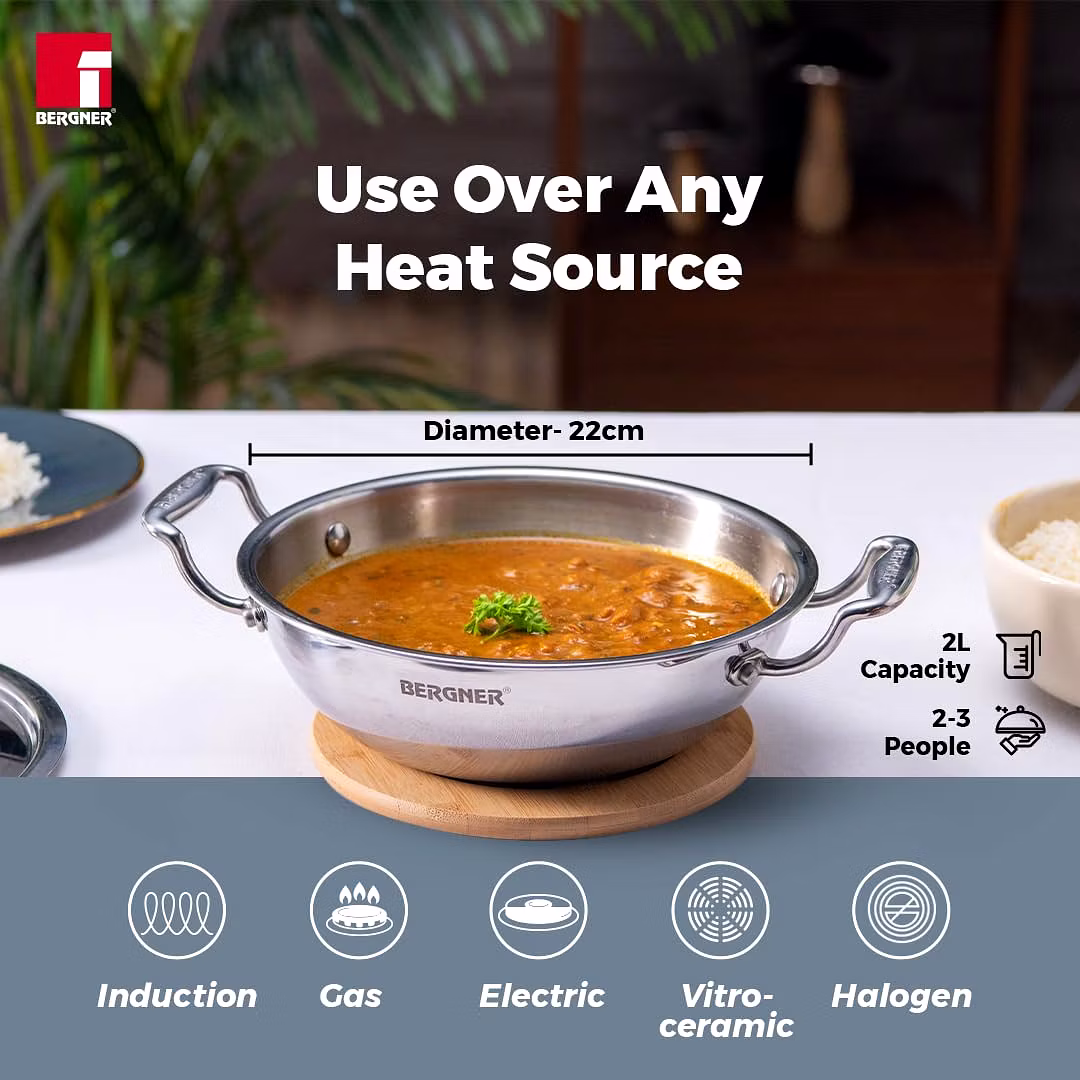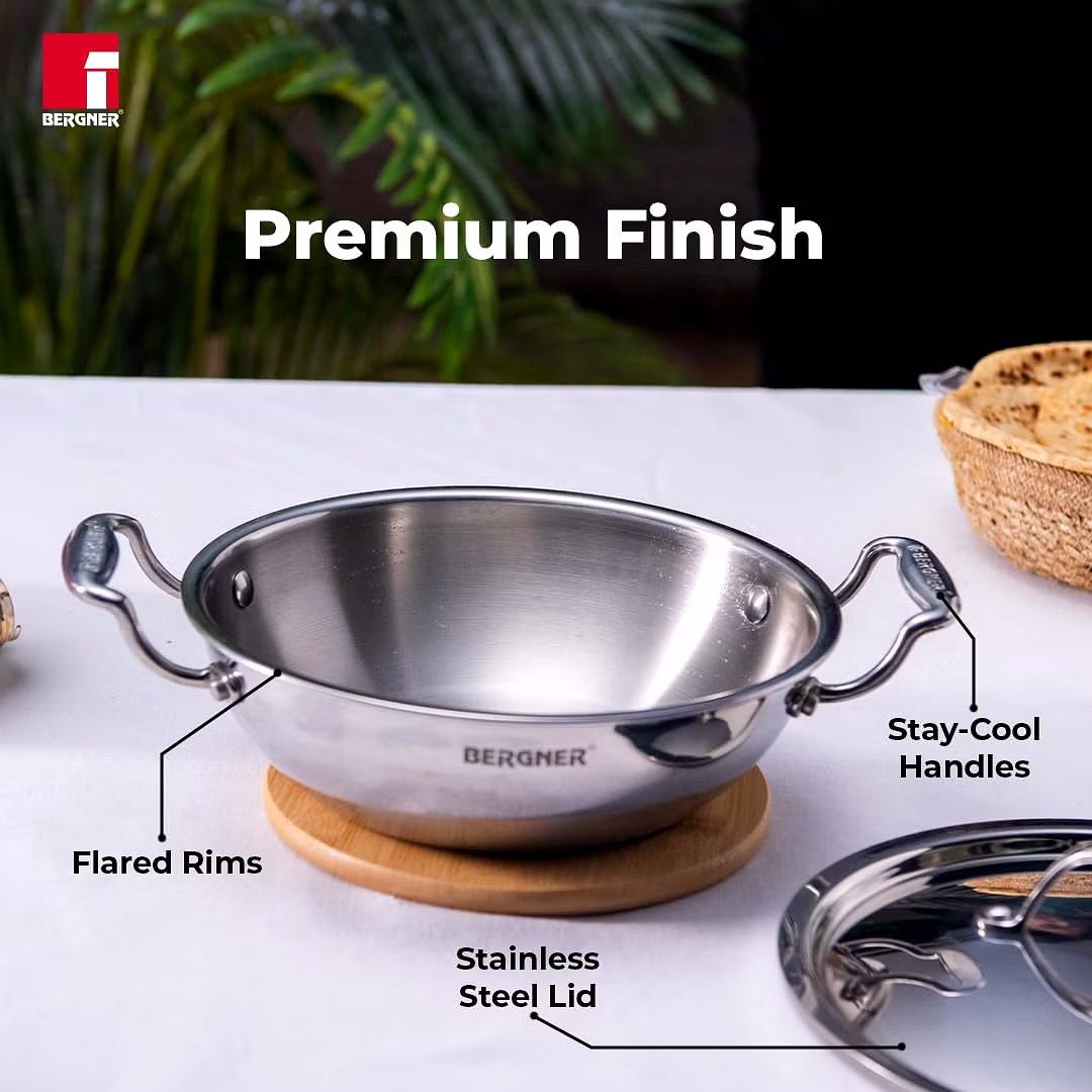 ??Less Oil Use & Low Flame Cooking : The triply material heats evenly and reduces hot spots, preventing food from burning or sticking. This allows you to use less oil while still achieving a non-stick effect for healthier cooking