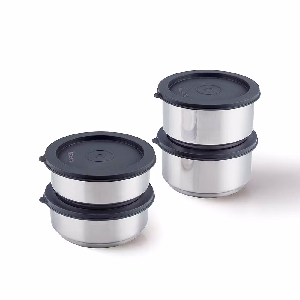 Borosil Carry Fresh Stainless Steel Insulated Lunch Box Set of 4, (2pcs 280 ml + 2pcs 180 ml)