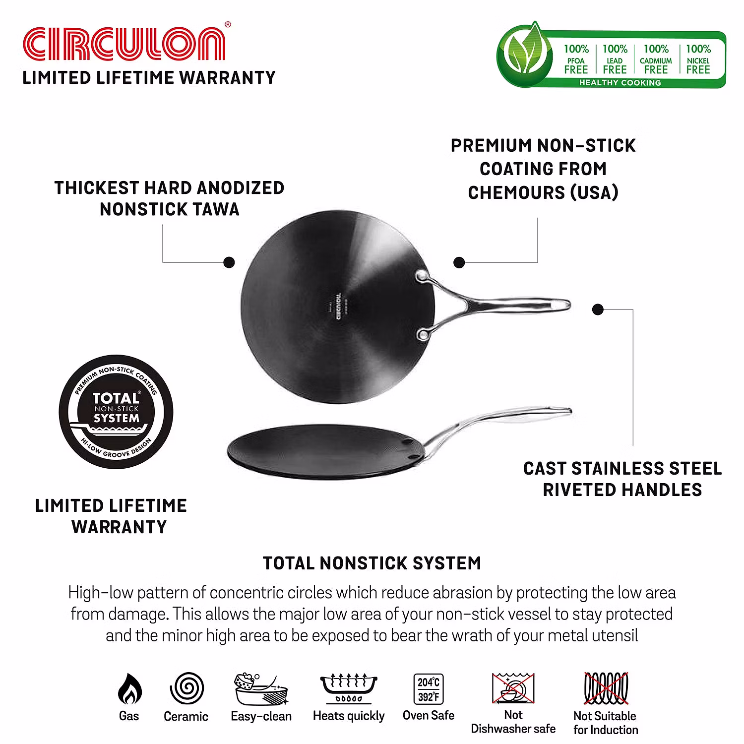 ?? Suitable Cooktops: Suitable for gas and electric cooktops. The Nonstick Tawa is not suitable for induction. Mainly used for dishes like Chappatis, Besan Chillas, Dosa, Paranthas, Pancakes, Crepes, Tortillas or dishes that need shallow frying like tikkis. A highly useful Tawa for daily household needs.