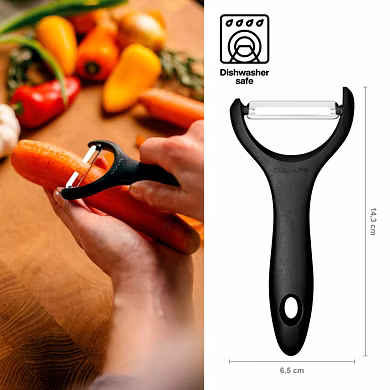 Effortlessly peel vegetables with the FISKARS Y-Shaped Peeler. Stainless steel blade and ergonomic design for comfortable, safe use in every kitchen.
