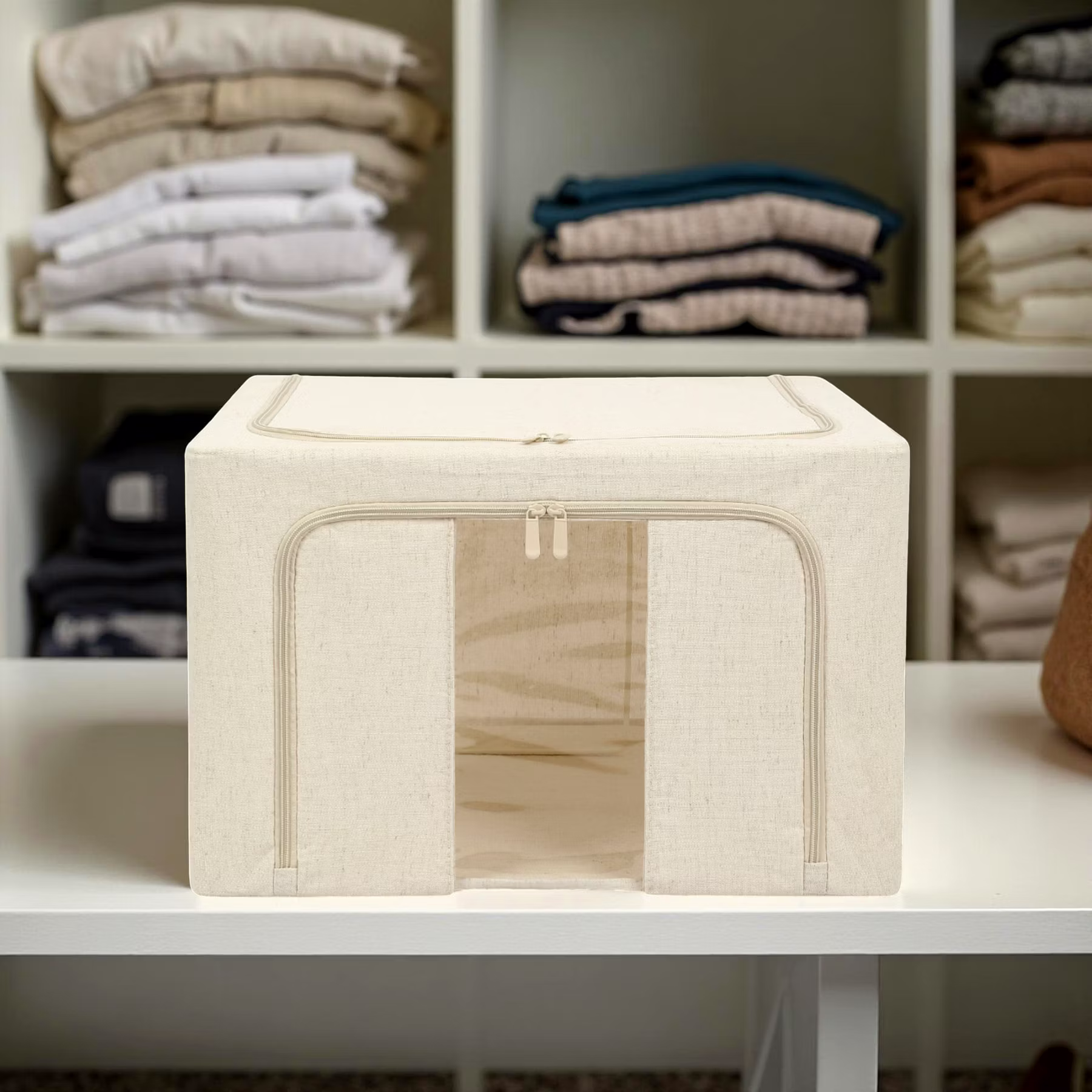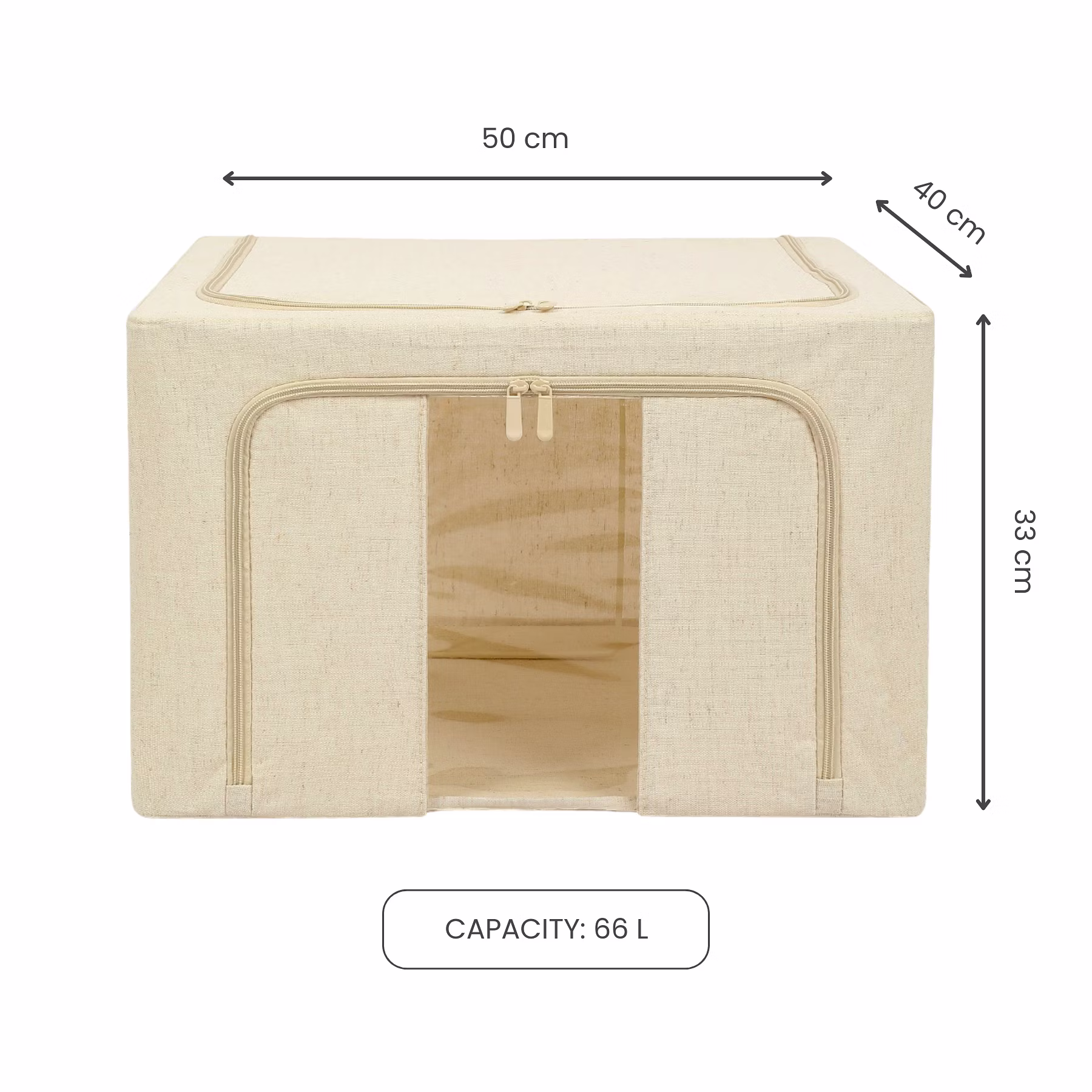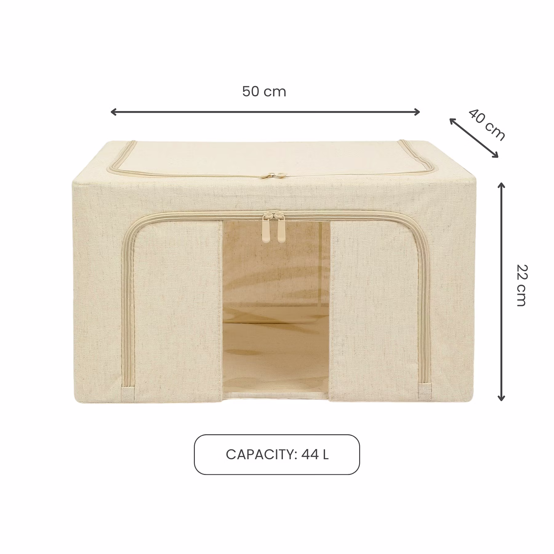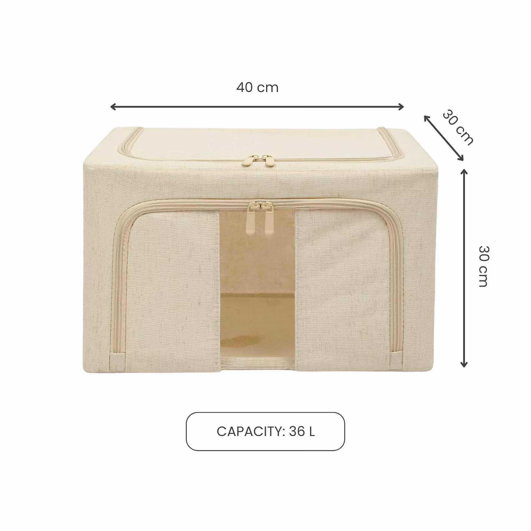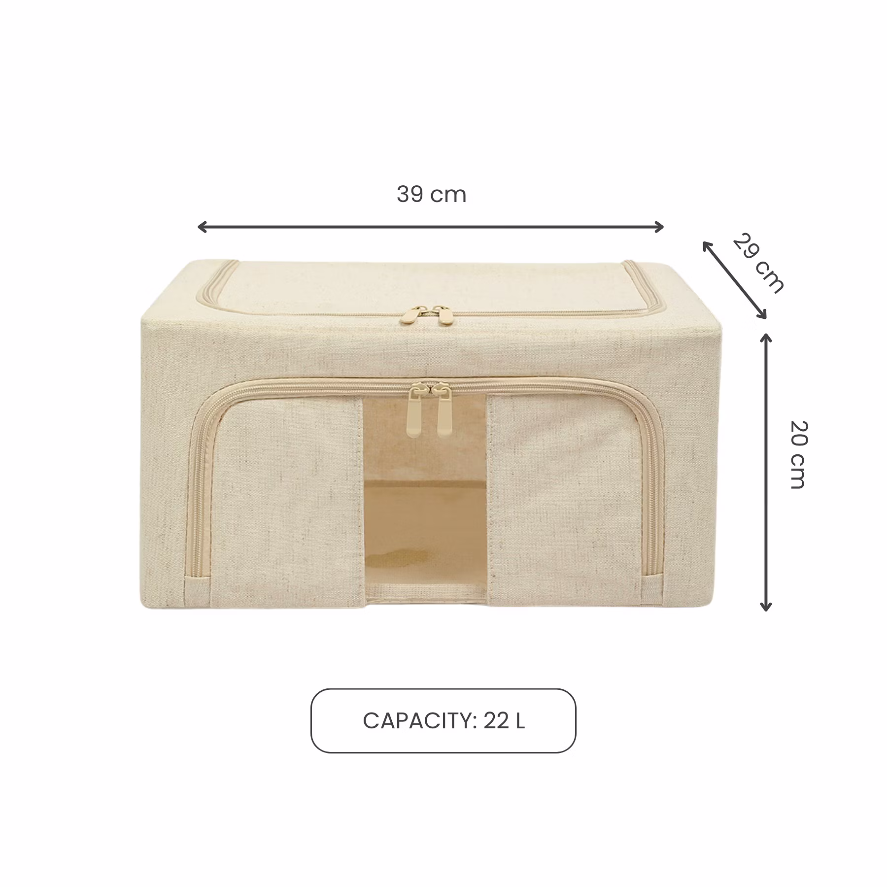 Organise effortlessly with our 22L Collapsible Storage Bin, crafted from durable cotton-hemp fabric with a powder-coated steel frame for sturdy support. The transparent window lets you easily view stored items, while its foldable design ensures space-saving convenience. Perfect for decluttering closets, shelves, or under-bed storage, this bin blends functionality with style.