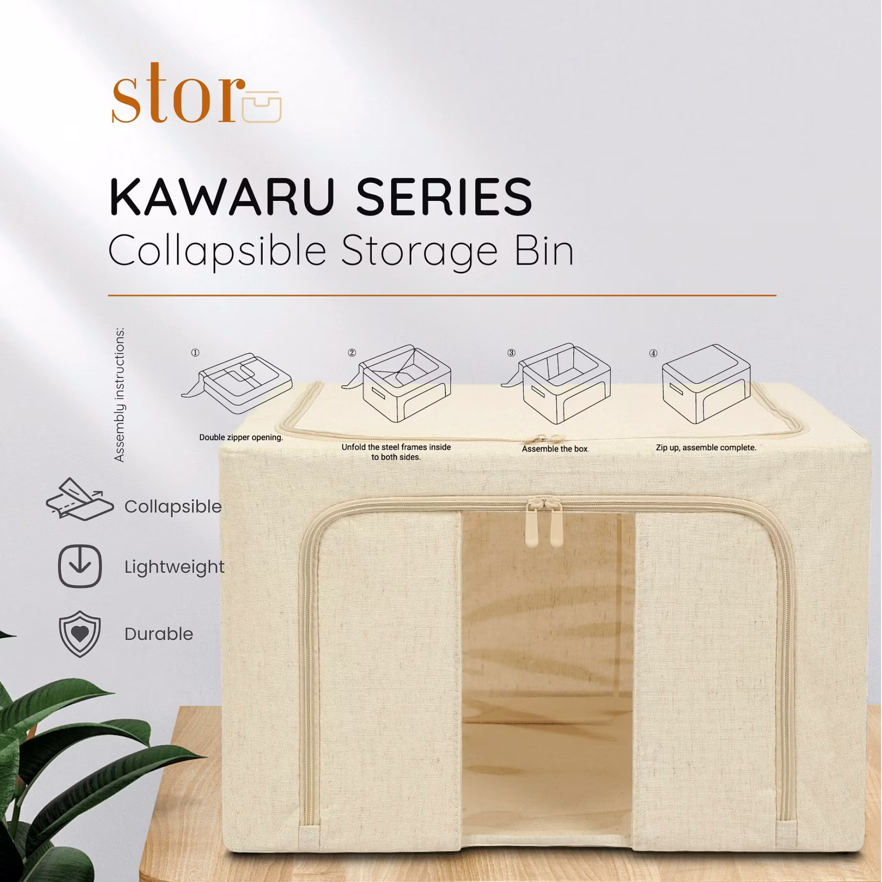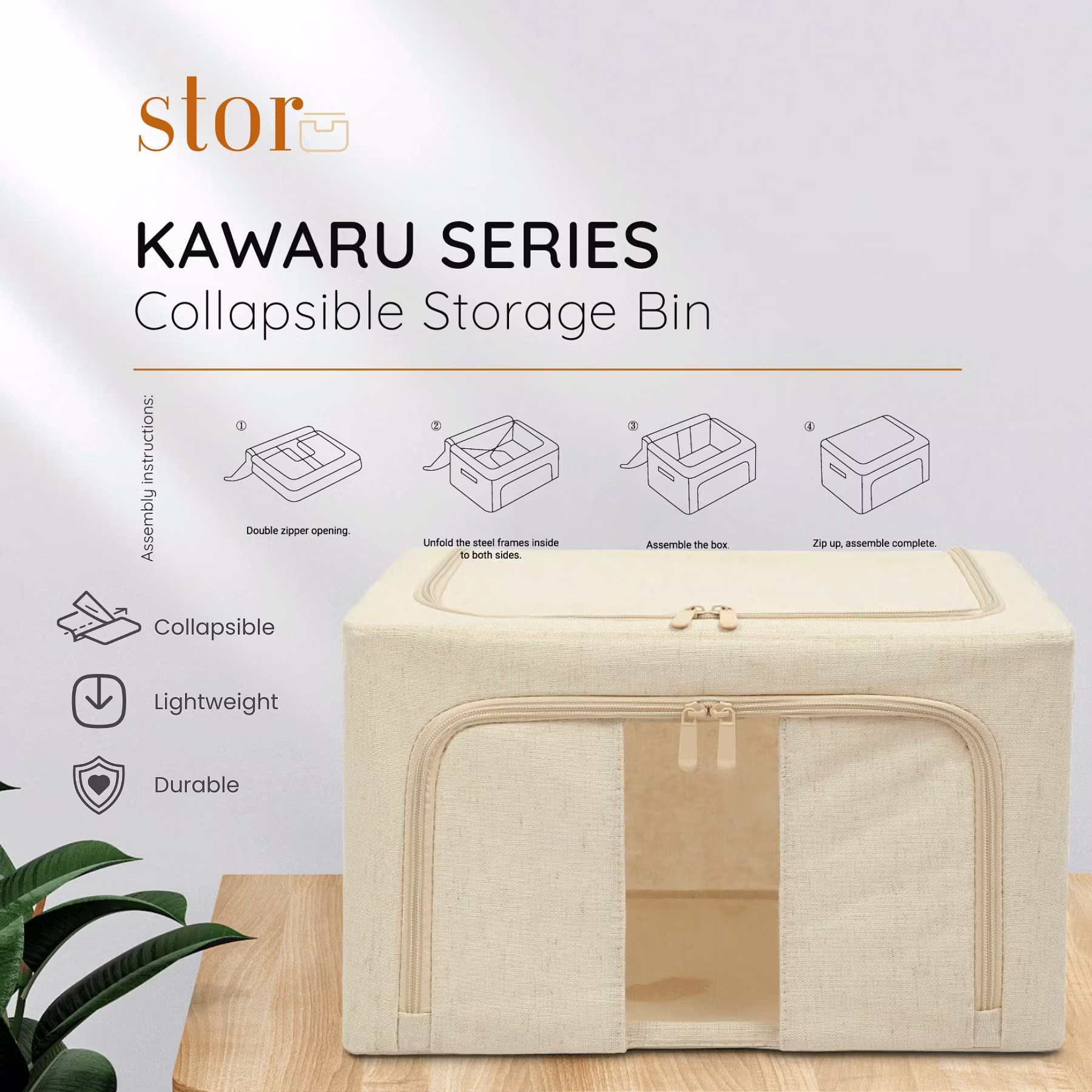 Effortlessly organise your space with the 22L FoldView? Collapsible Storage Bin. Crafted from eco-friendly cotton-hemp fabric and reinforced with a powder-coated steel frame, it offers both durability and elegance. A transparent front window allows quick visibility of contents, while its foldable design makes it easy to store when not in use. Perfect for closets, shelves, or under-bed storage?bringing function and style together in one smart solution.