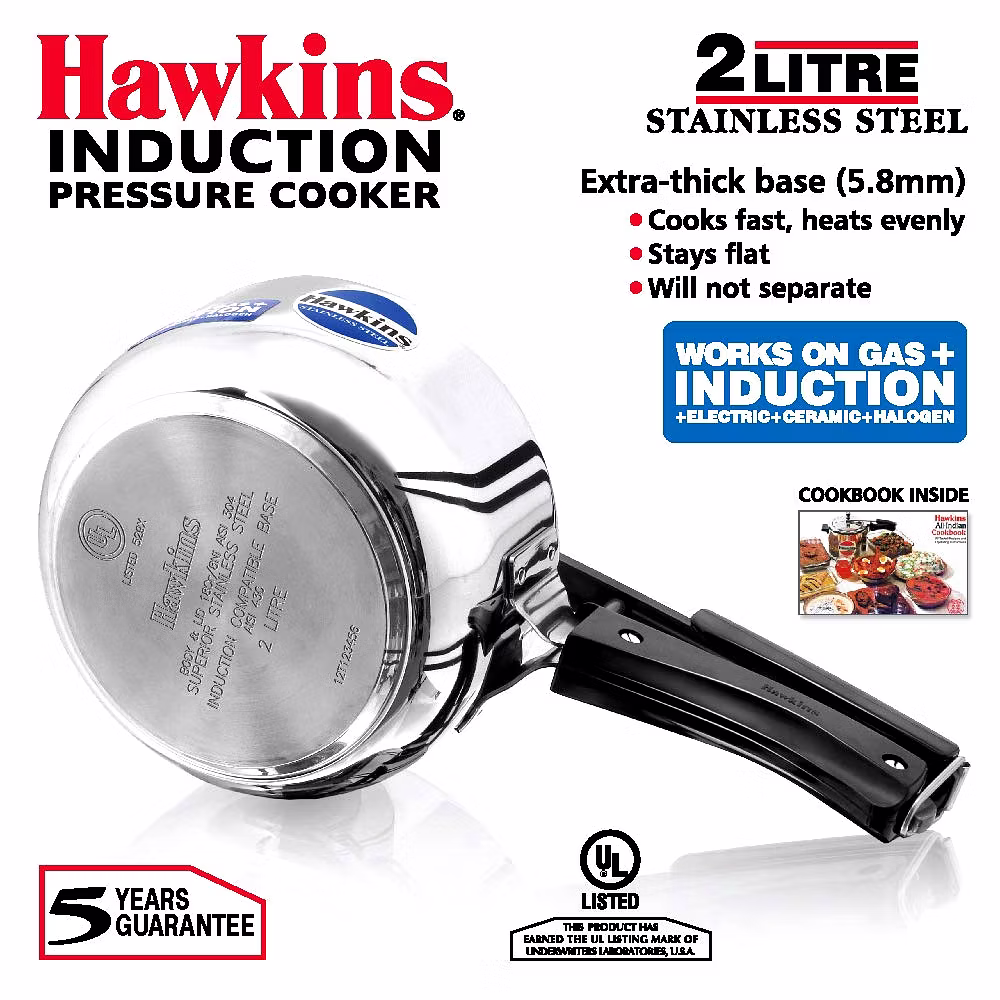 Easy to Clean and Extremely Hygienic: The stainless steel material used in this pressure cooker remains corrosion-resistant and hygienic ; Suitable for Gas, Induction, Electric, Ceramic and Halogen Cooktops