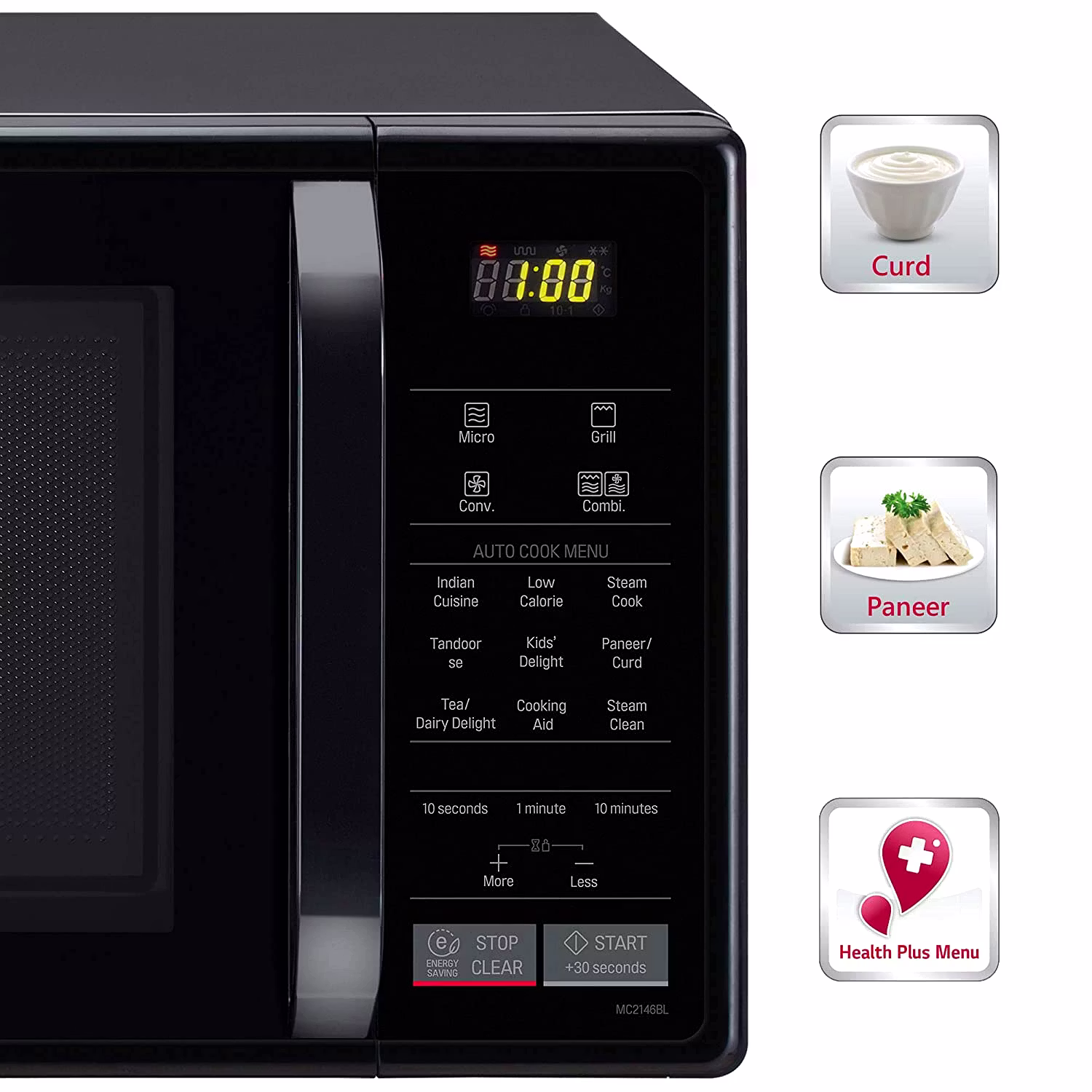 Additional Features: Door Type - Side Swing, Control Type - Membrane; Healthy & Tasty Cooking, Make softer and delicious Paneer/Curd at home, Child Lock - Ensures complete safety especially for homes with young children, Light Disinfect, Fast Cook, Quick Defrost, Defrost Veg / Non-Veg
