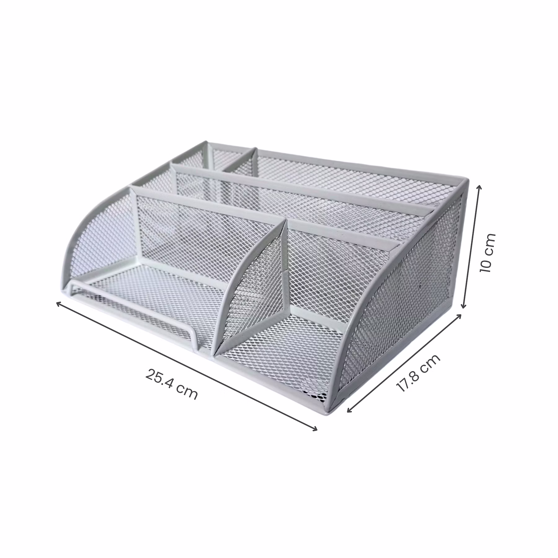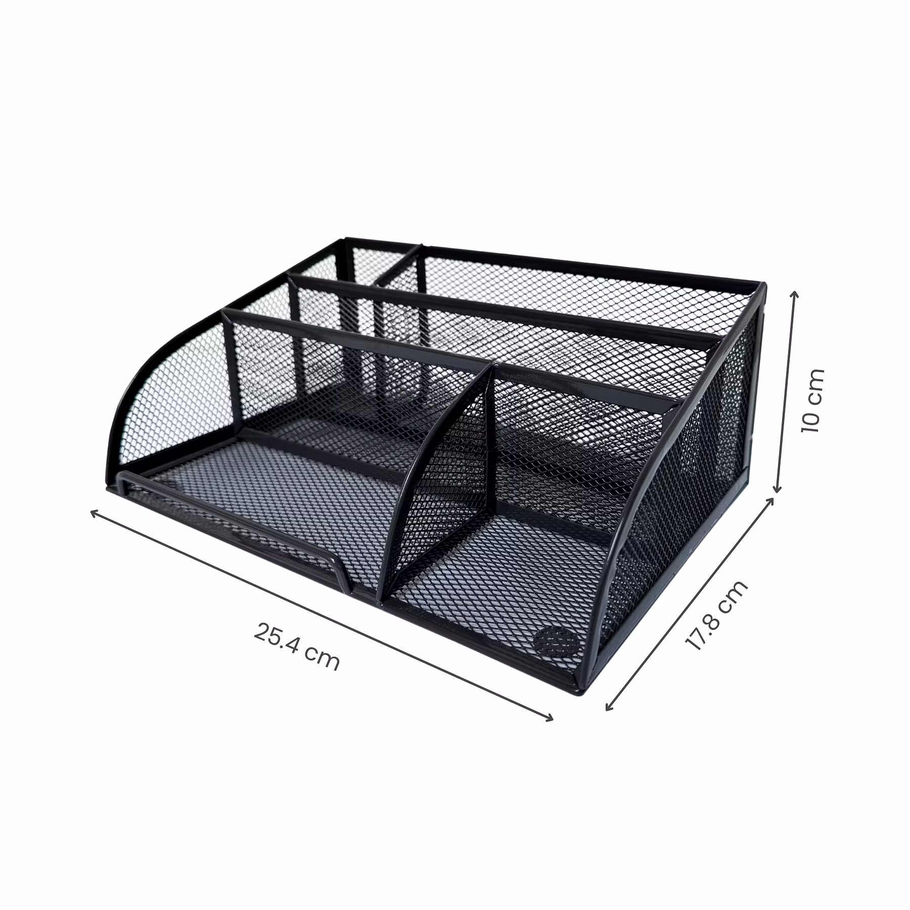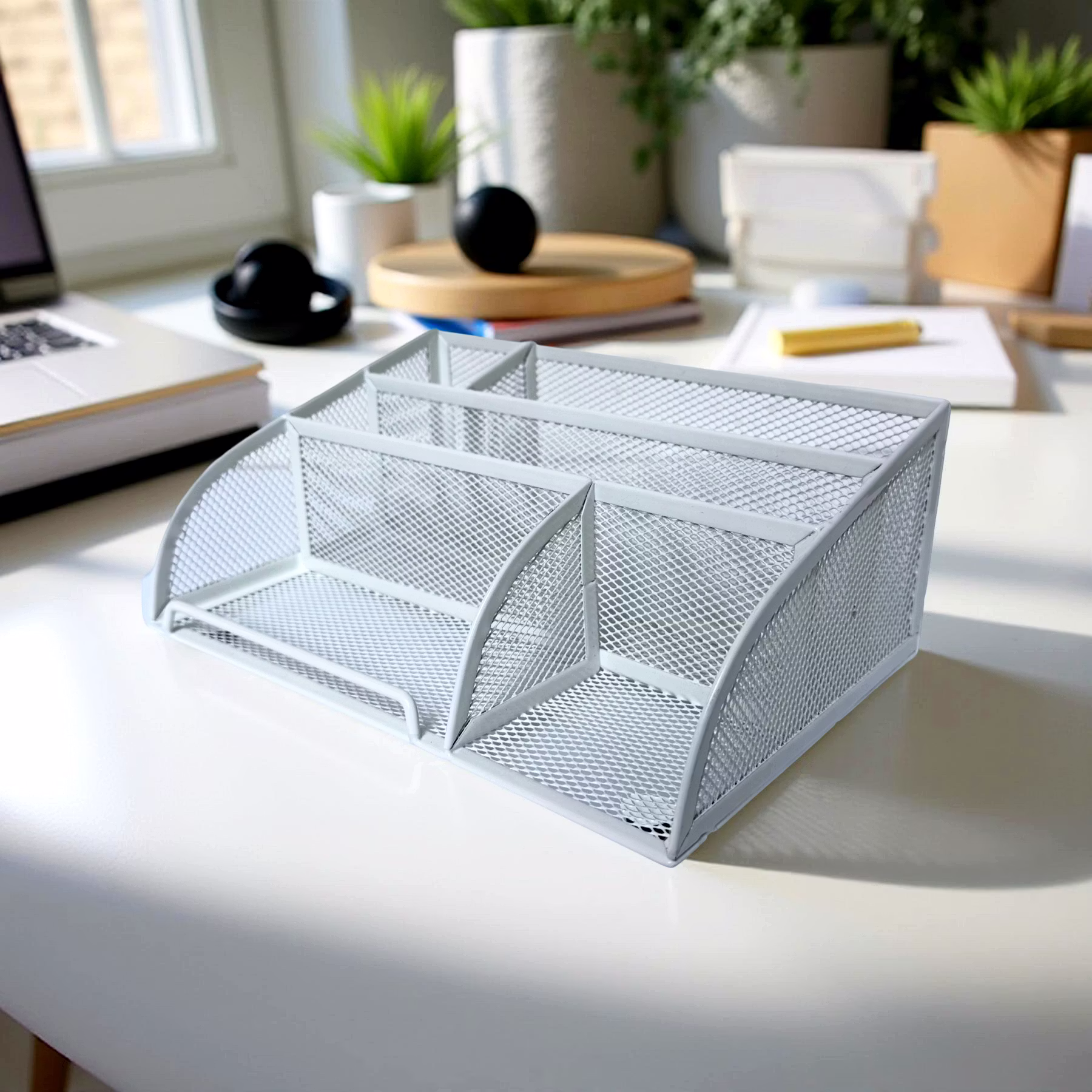 Keep your workspace neat and efficient with the Mesh Desk Organizer. Designed with multiple compartments of varying sizes, it easily stores pens, sticky notes, papers, and office supplies. The durable metal mesh design ensures visibility and easy access, blending seamlessly into any modern office or home setup.