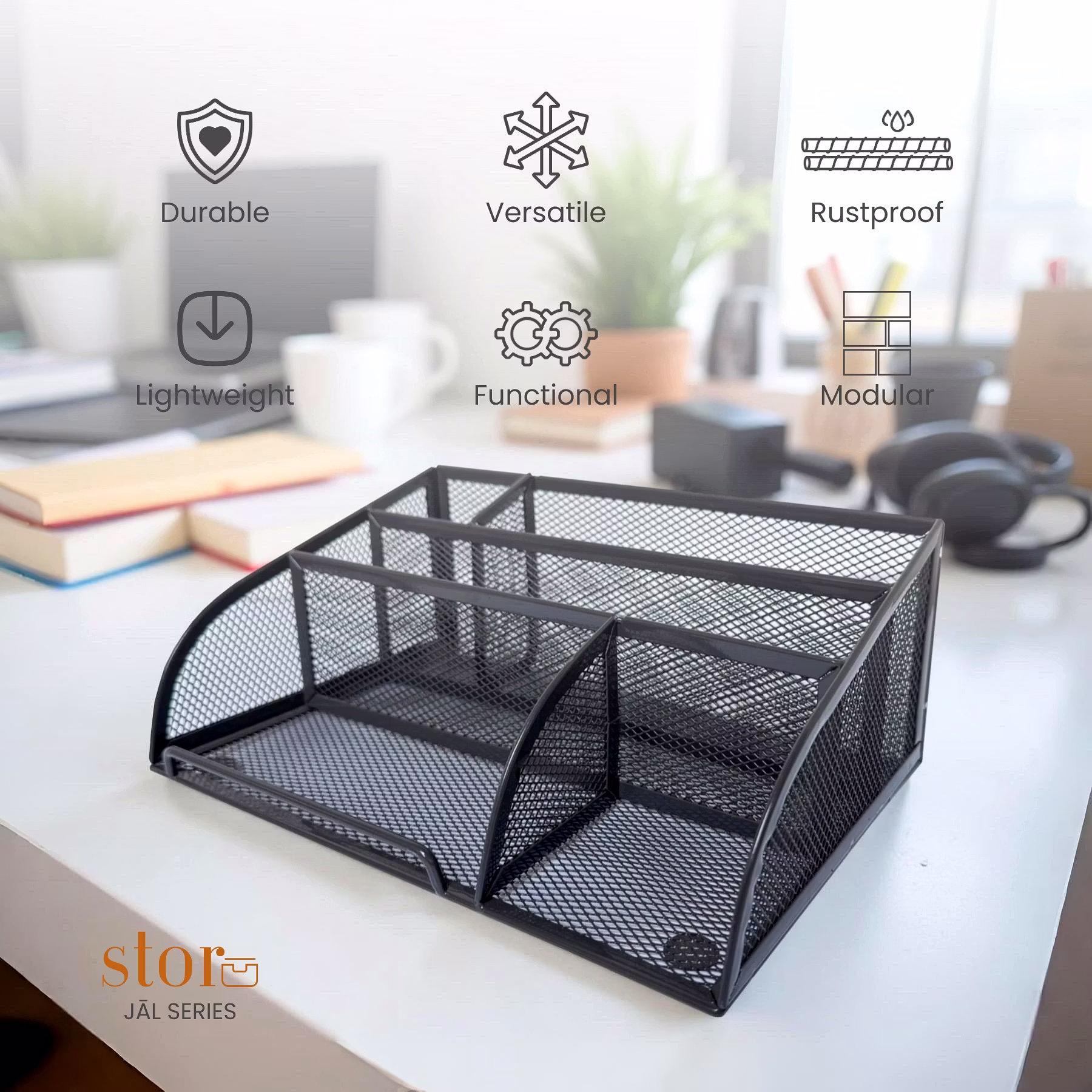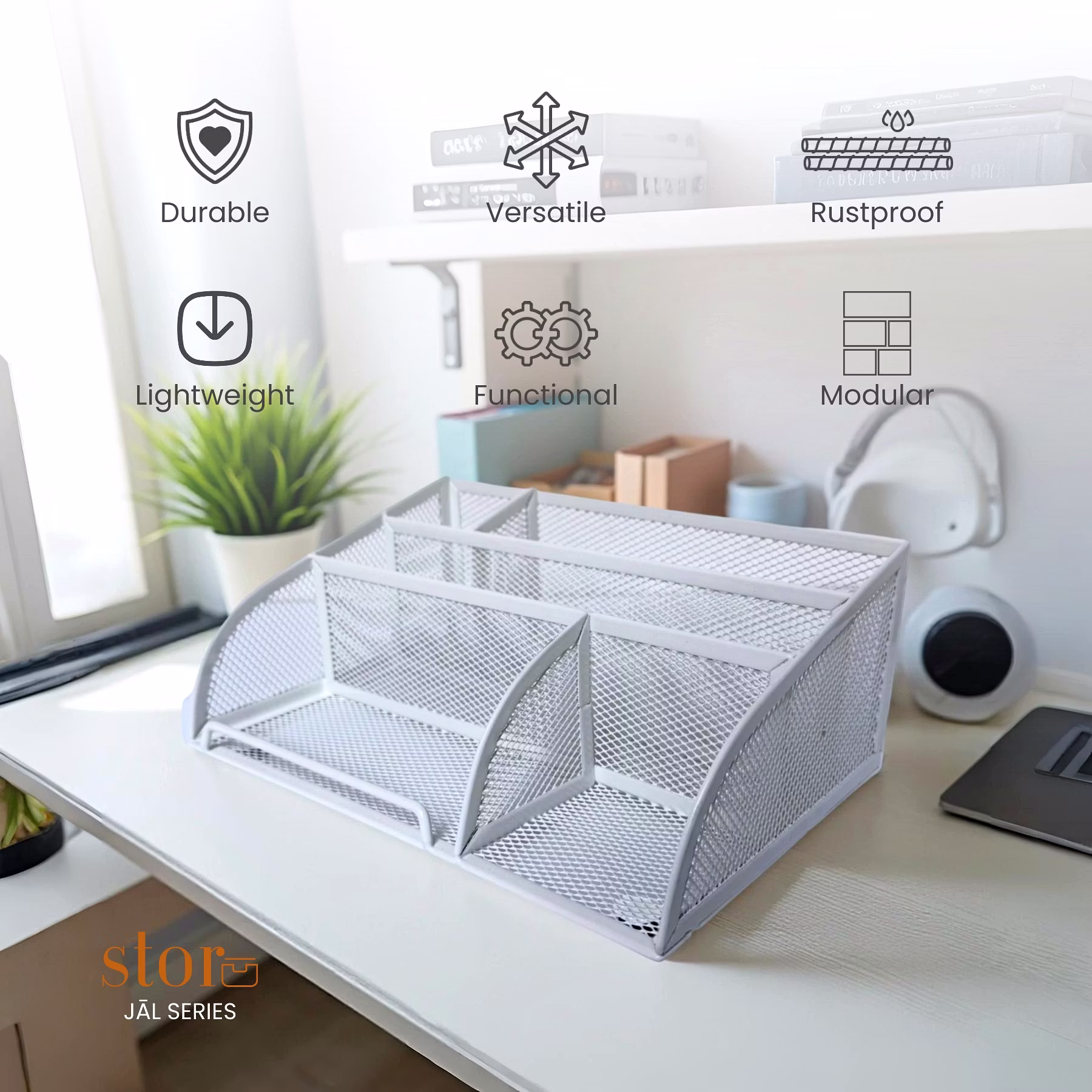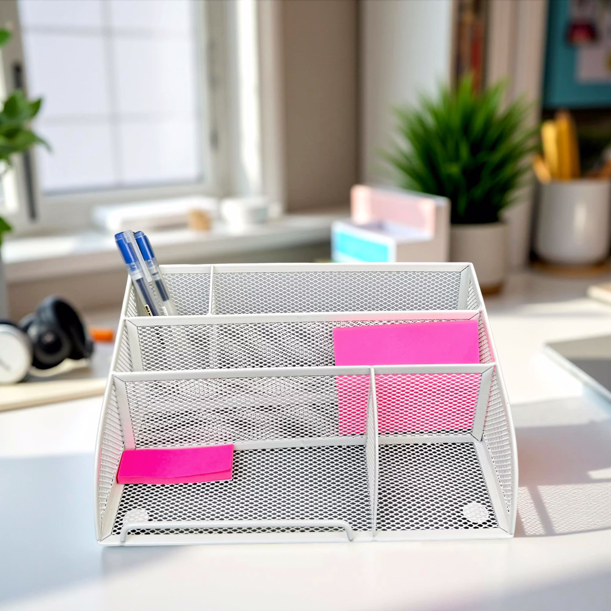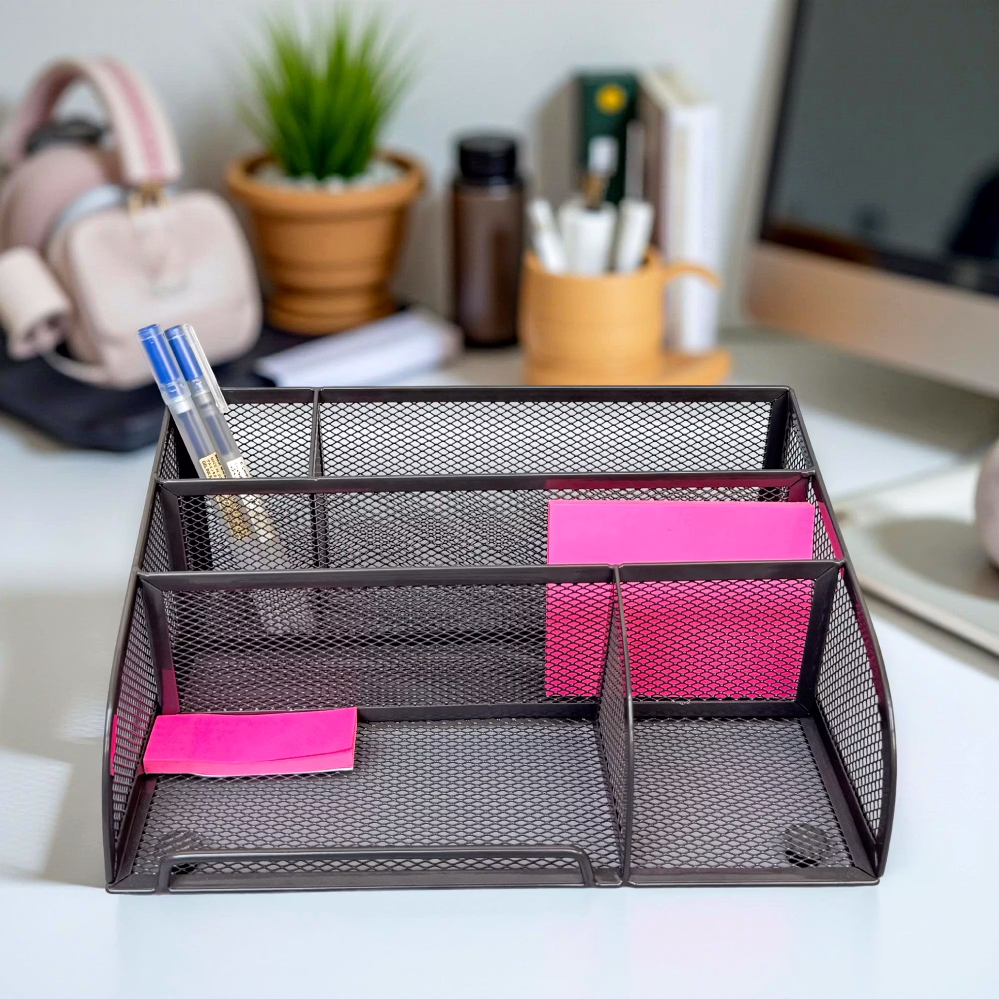 Keep your workspace neat and efficient with the Mesh Desk Organizer. Designed with multiple compartments of varying sizes, it easily stores pens, sticky notes, papers, and office supplies. The durable metal mesh design ensures visibility and easy access, blending seamlessly into any modern office or home setup.