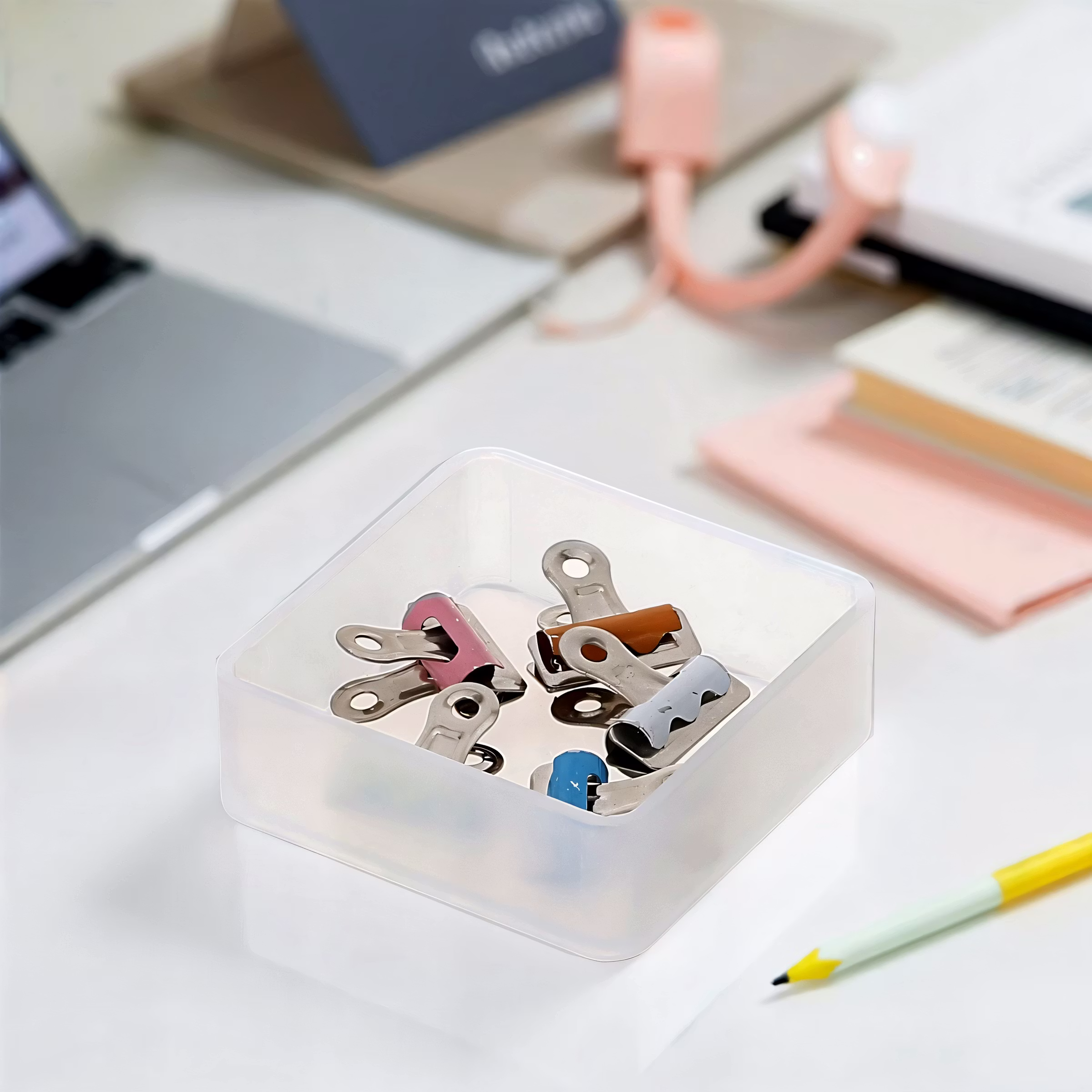 Keep your workspace neat and stylish with the Minimalist Desk Organizer. Made from durable, frosted plastic, this compact box is perfect for holding binder clips, pins, staples, or other small essentials. Its clean design fits seamlessly into any office or home setup, while the open-top layout offers easy access. Ideal for desks, drawers, craft corners, or vanity storage, it's your go-to solution for simple, clutter-free organisation.