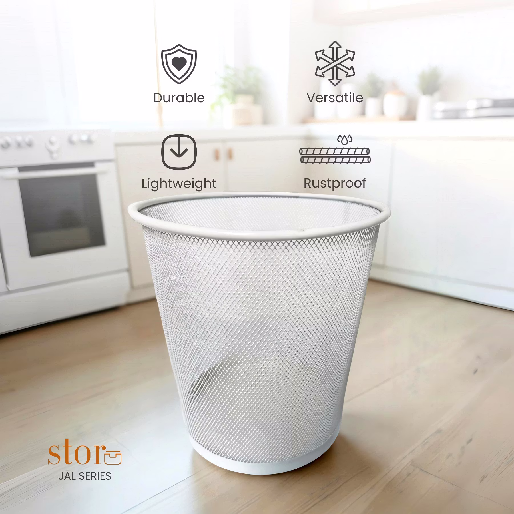 Keep your space clean and stylish with our Round Mesh Trash Can, crafted from durable, powder-coated metal for a modern, airy design. The breathable mesh structure prevents odor buildup, making it perfect for offices, bedrooms, and study areas. Its lightweight yet sturdy build ensures easy placement while optimizing space for a clutter-free environment!