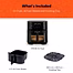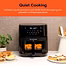 Quiet Cooking, Cooking Status Indicator, SmartTemp Technology, Clear Window, Favorite Buttons. 5.7L CAPACITY ? Fits up to 1.4kg fries or 1.2kg whole chicken, perfect for the entire family. CLEAR WINDOW and INTERNAL LIGHT ? See your food?s cooking progress through the clear window without opening the basket. SAVE YOUR FAVORITE RECIPES ? Our Favorite buttons let you customize and save the settings of 3 of your favorite recipes for one-touch access. QUIET COOKING ? With 55dB noise level, it?s quieter than most air fryers so you can cook peacefully. SMARTTEMP TECHNOLOGY ? Automatically adjusts temperature for Fries and Samosa presets to give you perfectly tender on the inside and crispy on the outside results every single time. SHAKE REMINDER ? Ensures even frying and crispy results.