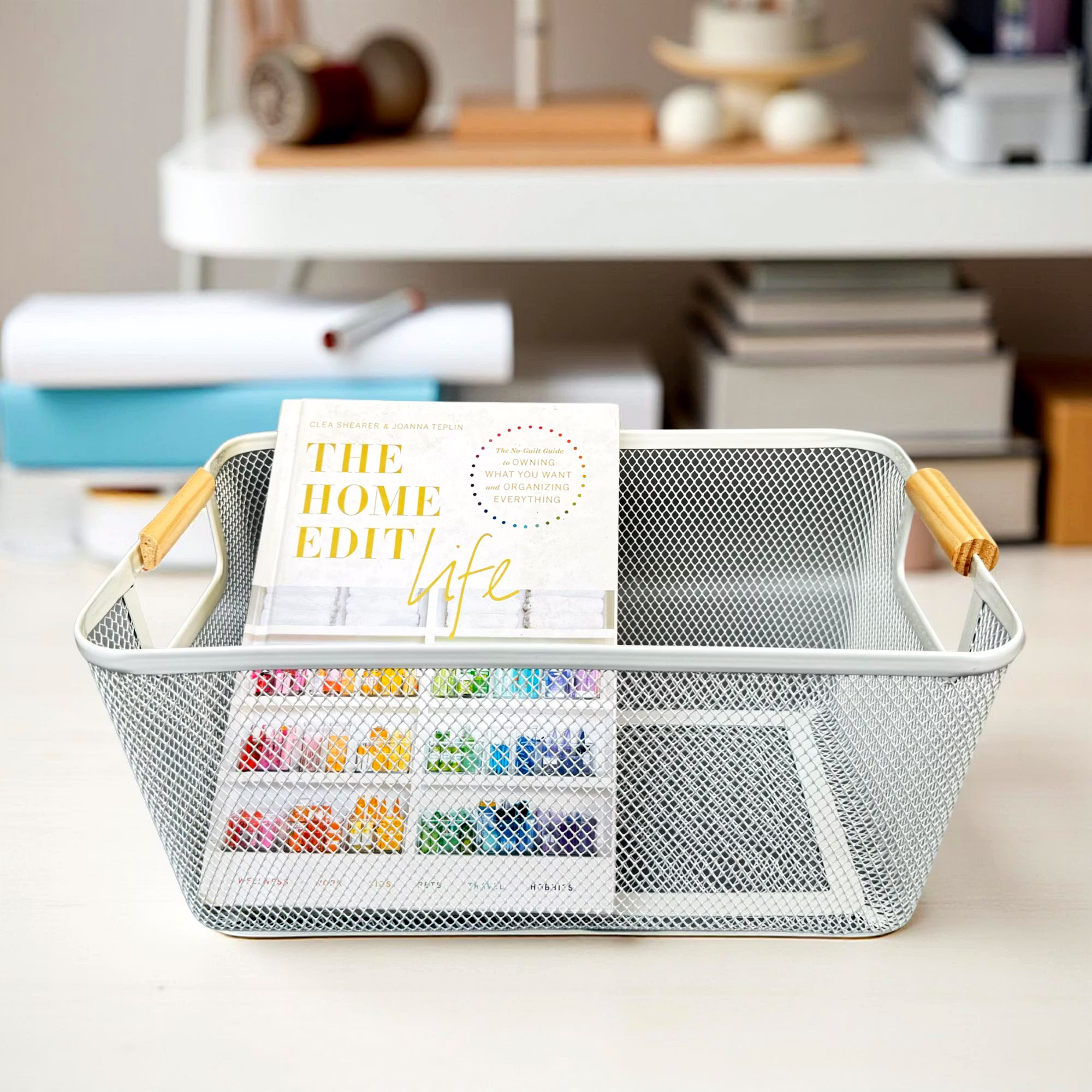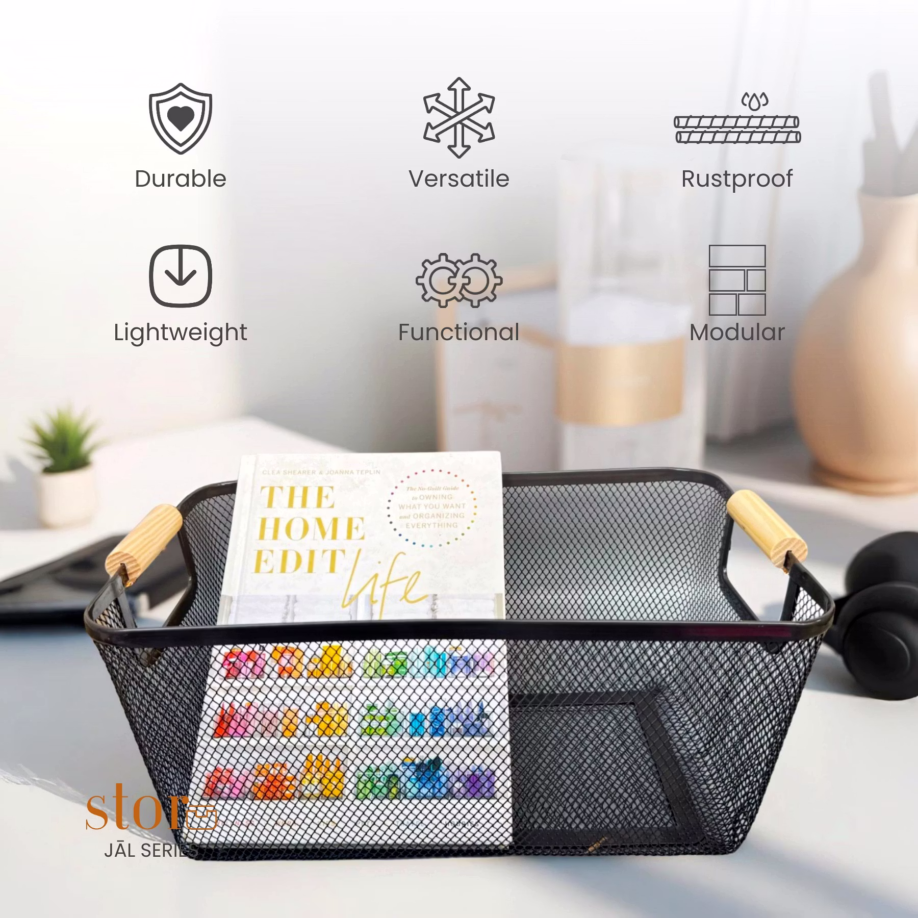 Organise effortlessly with our Mesh Storage Basket, crafted from durable, powder-coated metal for a sturdy yet lightweight design. Its open-mesh structure allows for easy visibility and airflow, making it perfect for storing office supplies, kitchen essentials, toiletries, and more. A versatile, space-saving solution to keep any space neat and clutter-free!
