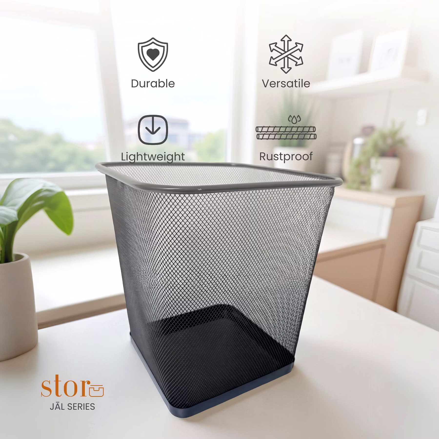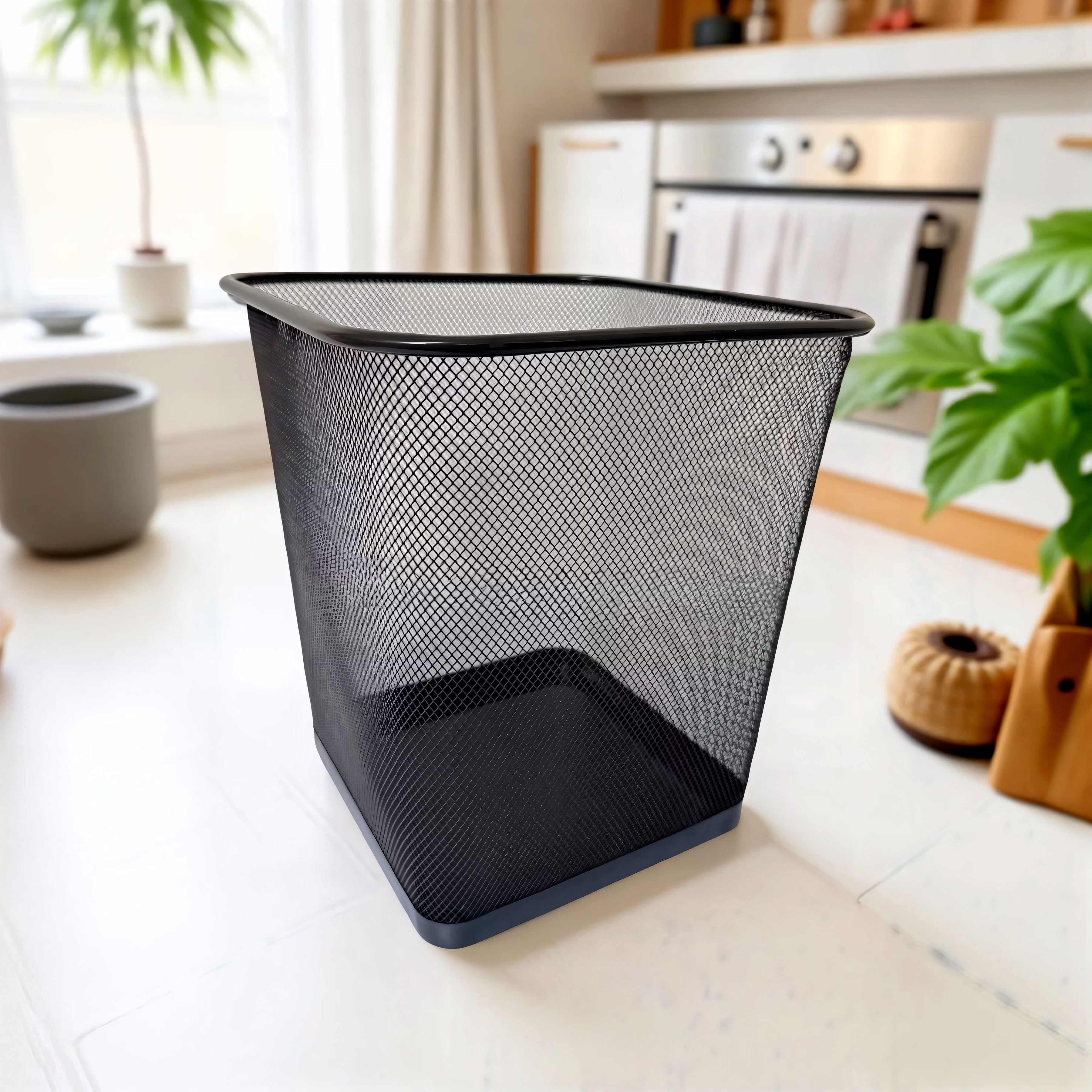 Upgrade your space with the Sleek Square Mesh Wastebasket ? a modern twist on the classic trash bin. Made from durable black metal mesh, its square shape offers a contemporary design perfect for fitting neatly into corners or compact spaces in offices, kitchens, or home workstations.