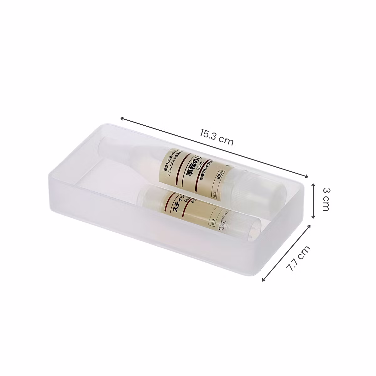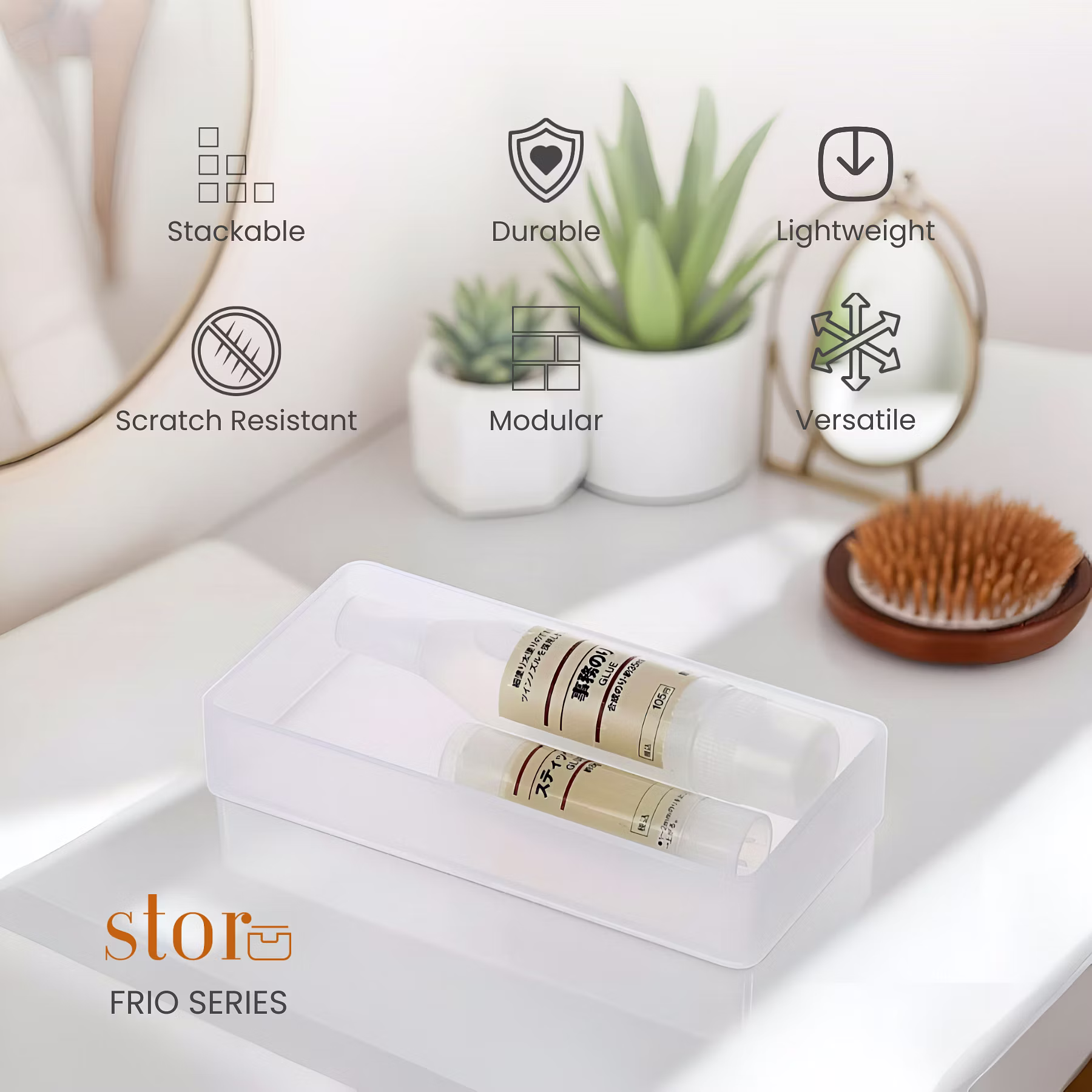 Bring order and elegance to your space with the Slim Vanity Organizer. Crafted from durable frosted plastic, this sleek tray is perfect for organising skincare, makeup, perfumes, or stationery. Its slim design fits easily on vanities, countertops, or inside drawers, offering both visibility and style. Functional yet minimalist, it?s ideal for modern bathrooms, beauty stations, or workspaces.