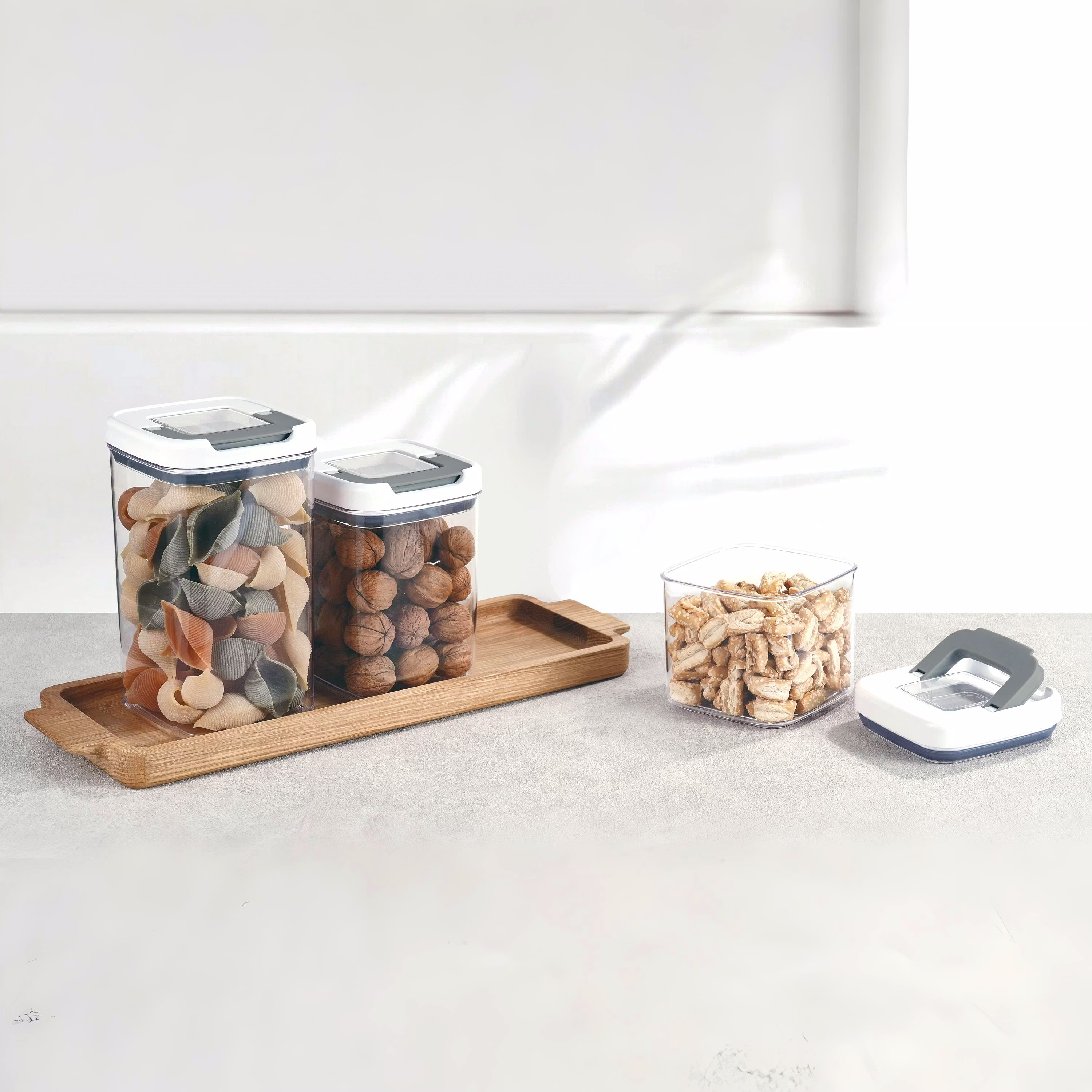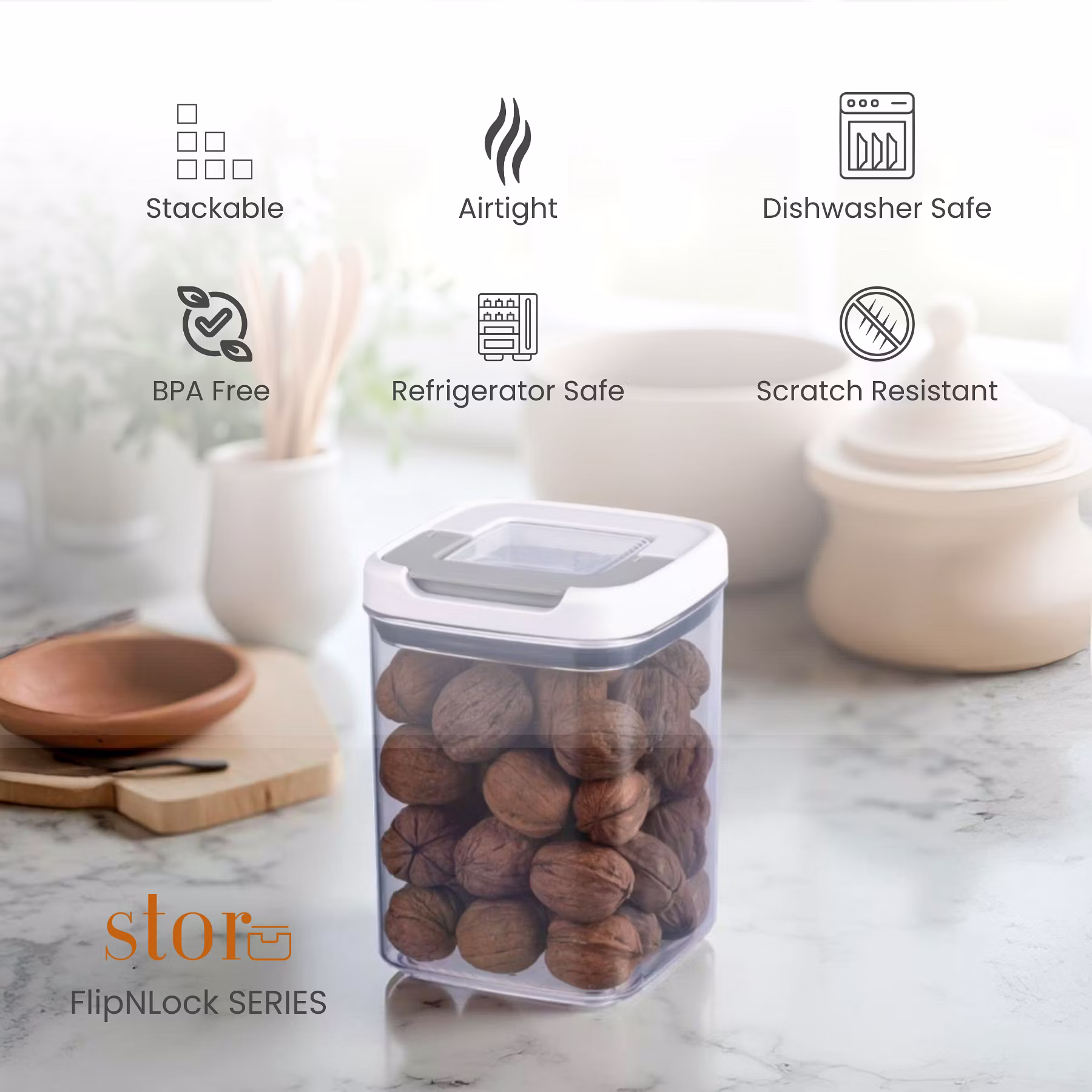 Keep your kitchen and pantry effortlessly organized with our airtight dry food storage containers, featuring a flip-and-lock lid mechanism for a secure seal. Designed for both style and function, they keep your ingredients fresh while elevating your storage game.