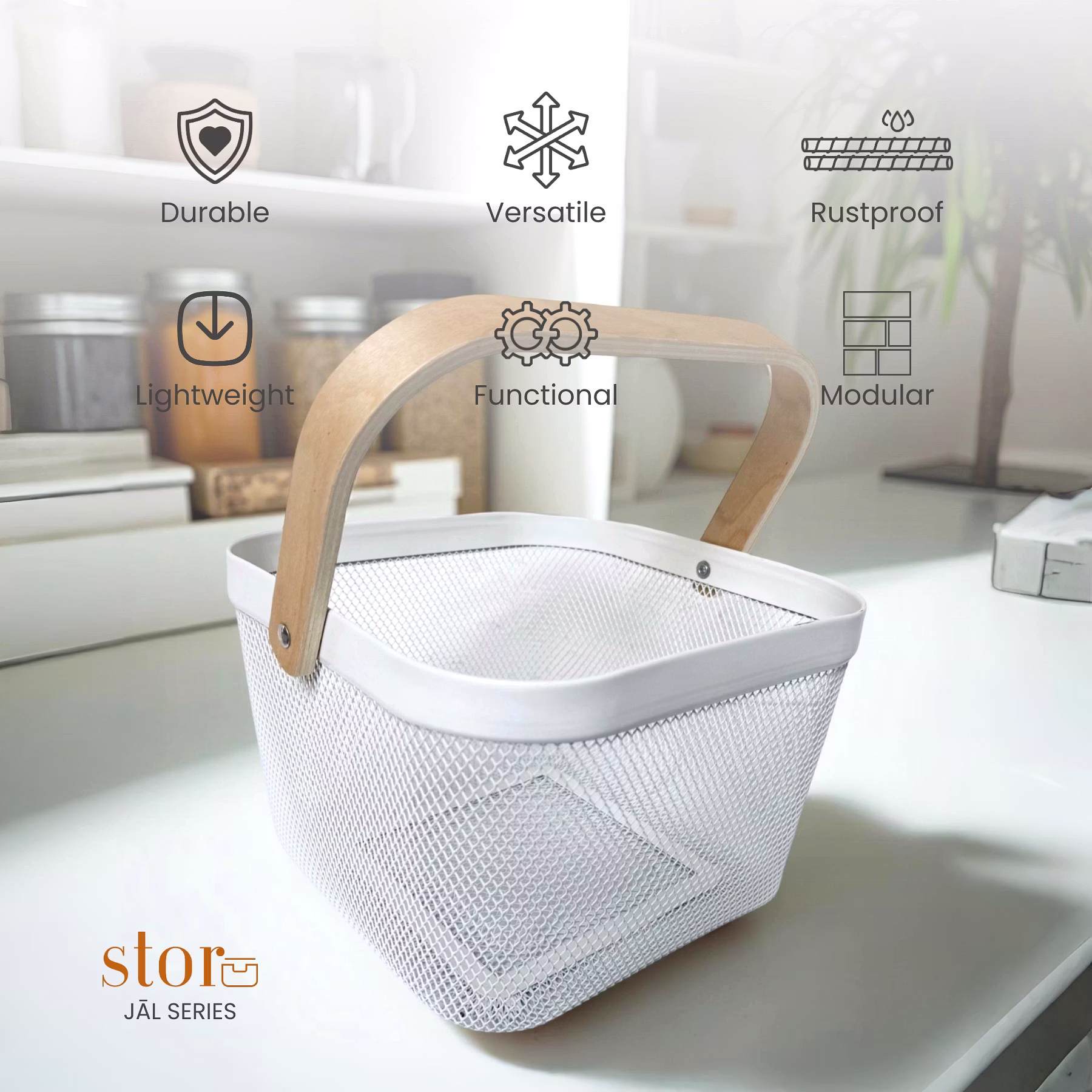 Organise effortlessly with our Square Mesh Storage Basket, crafted from durable, powder-coated metal for a sturdy yet lightweight design. Its open-mesh structure allows for easy visibility and airflow, making it perfect for storing office supplies, kitchen essentials, toiletries, and more. A versatile, space-saving solution to keep any space neat and clutter-free!