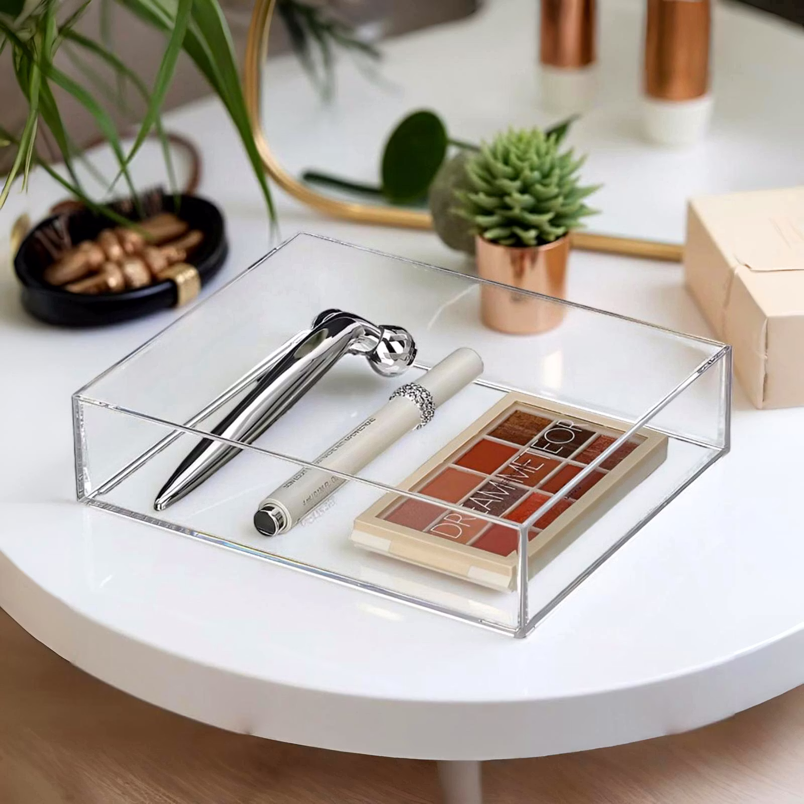 Maximise space and style with the ClearView? Stackable Storage Organiser. Made from sturdy, transparent acrylic, this organiser keeps contents visible, accessible, and neatly arranged. Its modular, stackable design allows you to customise storage across various spaces?from pantry shelves and bathroom counters to office desks and vanity drawers. Ideal for holding toiletries, stationery, cosmetics, and everyday essentials, it's the perfect blend of form and function.