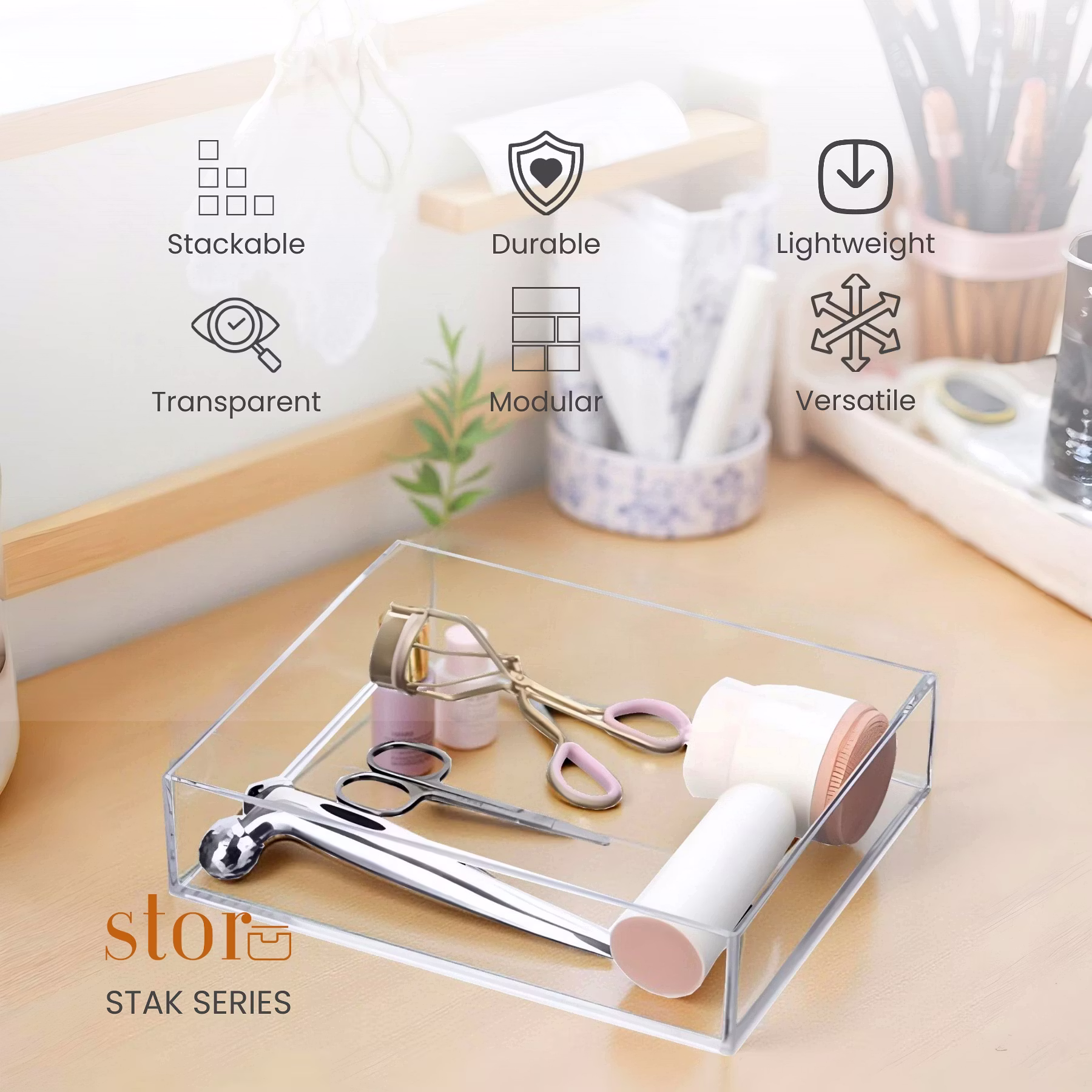 Maximize space with our Stackable Storage Organiser, designed for versatile, modular organisation. Made from durable, clear acrylic, it keeps items visible and easily accessible. Perfect for kitchens, bathrooms, offices, and closets, its stackable design optimizes storage without clutter. Ideal for organising vanity or pantry essentials, toiletries, stationery, and more!
