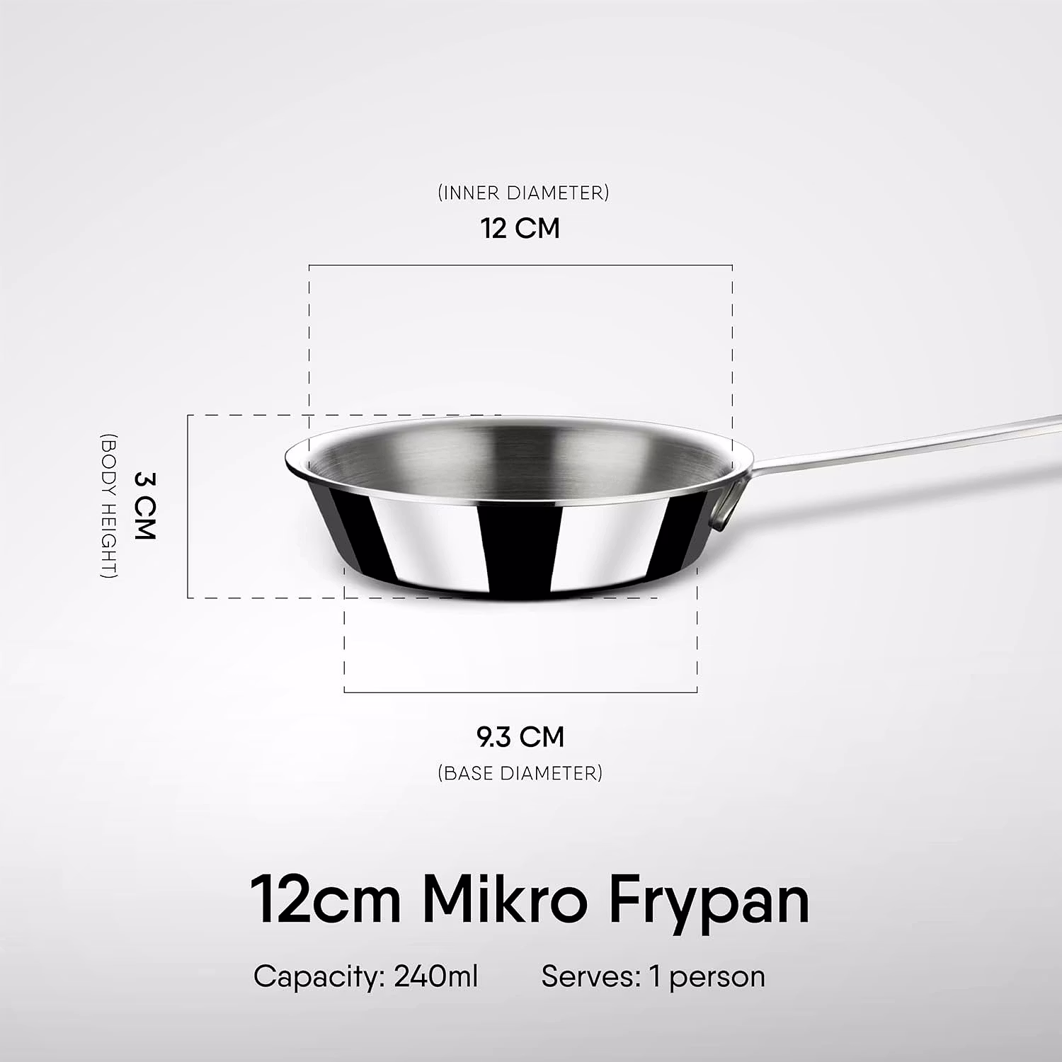 Product Care Instructions Do not overheat the Mikro Frypan when there is no food in it. Prolonged dry heating causes heat tints. Wash with mild soapy water and soft sponge. Do not use steel wool to clean the Mikro Frypan. After use, do not put the heated pan in cold tap water. Wait for it to cool down before pouring water in it. After wash, dry the Mikro Frypan completely before storing. White cloudy stains are a result of mineral deposits in the tap water and do not hamper the functioning of the Mikro FrypanDo not overheat the Mikro Frypan when there is no food in it. Prolonged dry heating causes heat tints. Wash with mild soapy water and soft sponge. Do no? See more