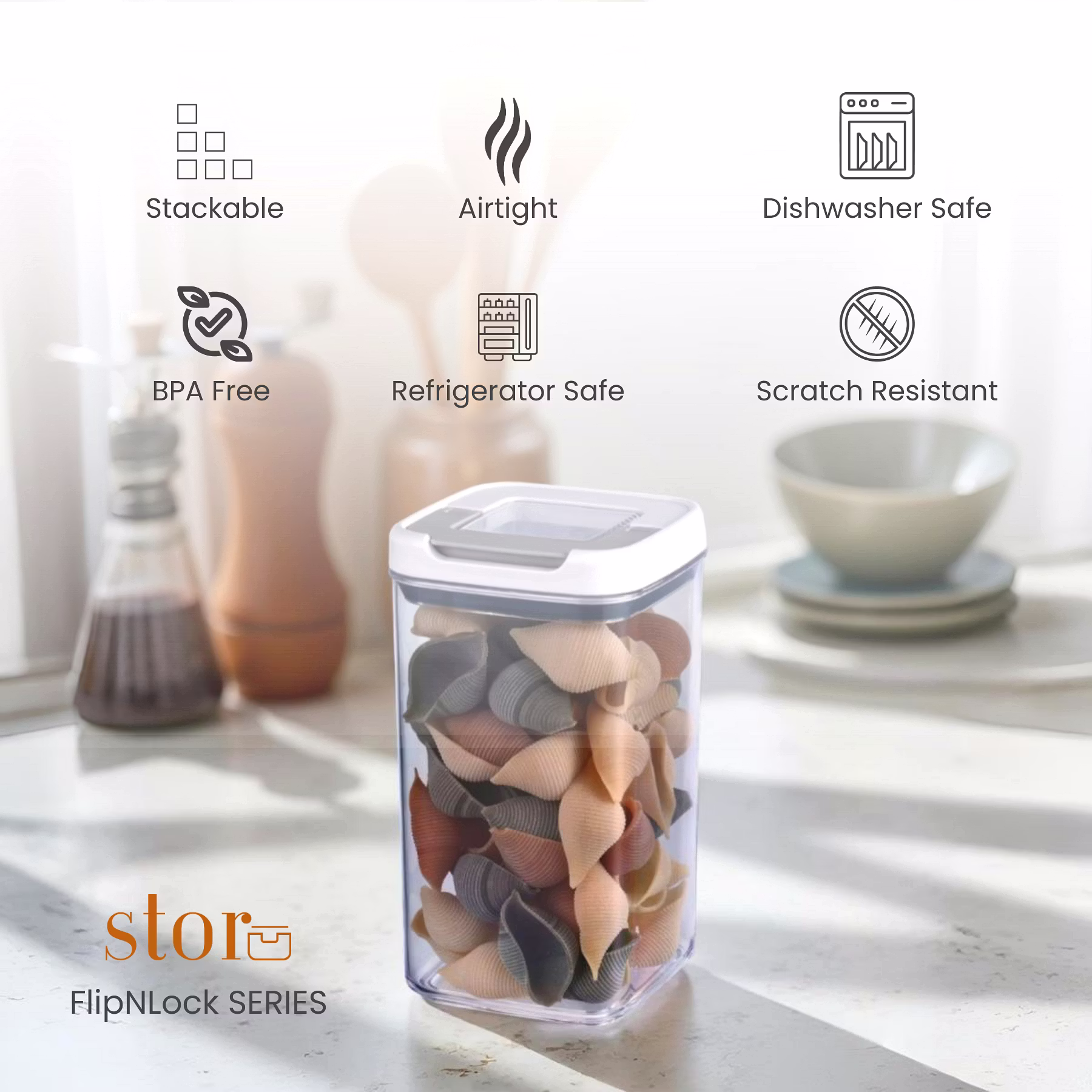 Keep your kitchen and pantry effortlessly organized with our airtight dry food storage containers, featuring a flip-and-lock lid mechanism for a secure seal. Designed for both style and function, they keep your ingredients fresh while elevating your storage game.
