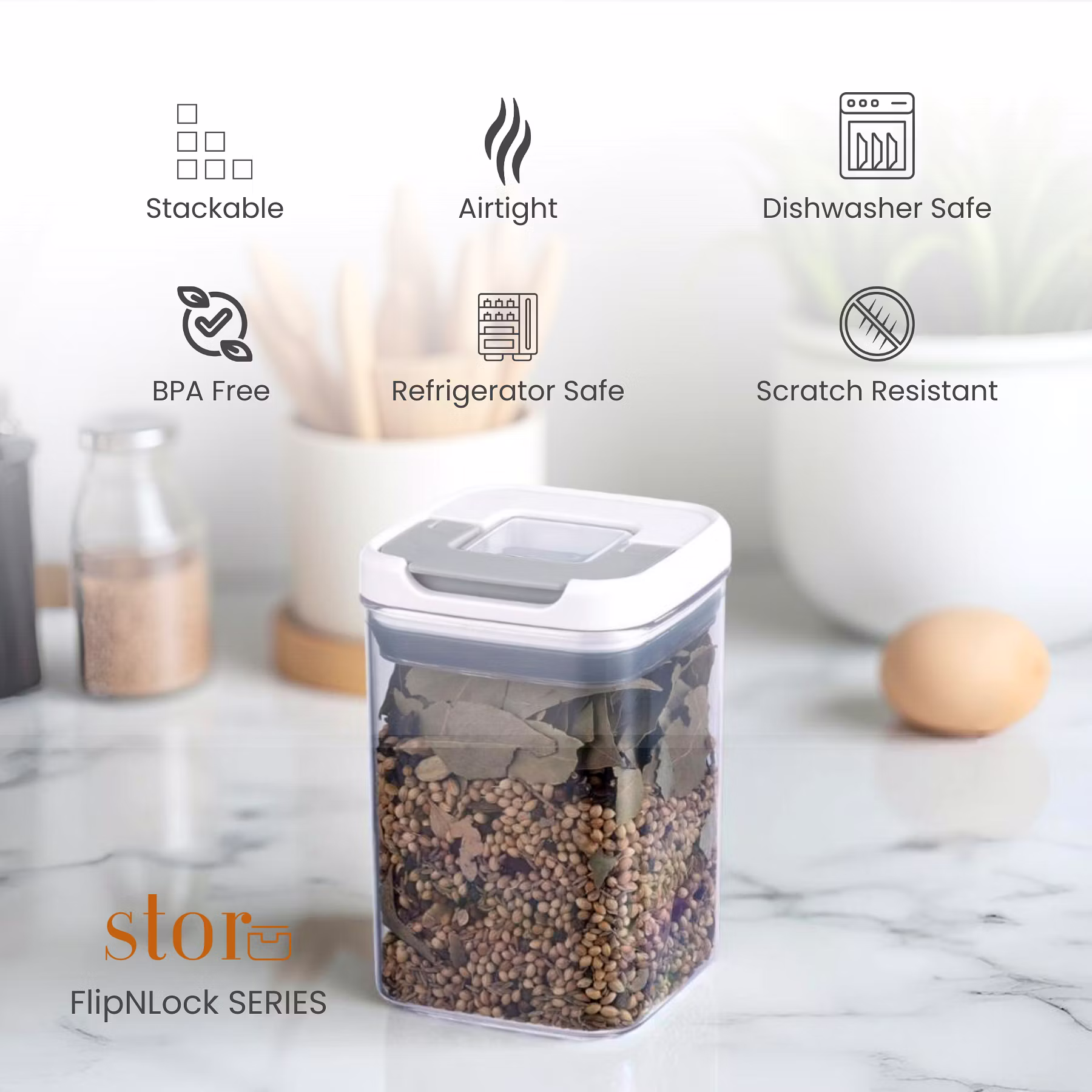 Keep your kitchen and pantry effortlessly organized with our airtight dry food storage containers, featuring a flip-and-lock lid mechanism for a secure seal. Designed for both style and function, they keep your ingredients fresh while elevating your storage game.