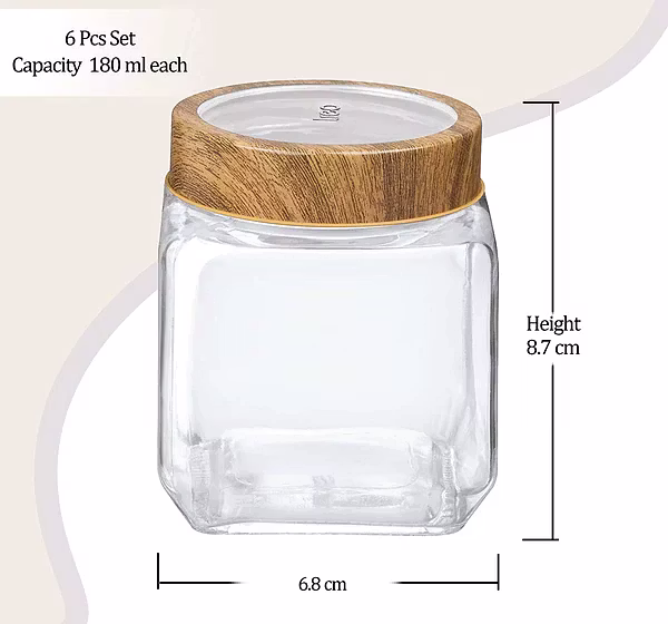 Keep your kitchen neat and stylish with the Treo Square Glass Jar, featuring a compact 320ml capacity and a trendy wooden finish airtight lid. Perfect for storing spices, tea, sugar, dry fruits, and small snacks while keeping them fresh and easily accessible