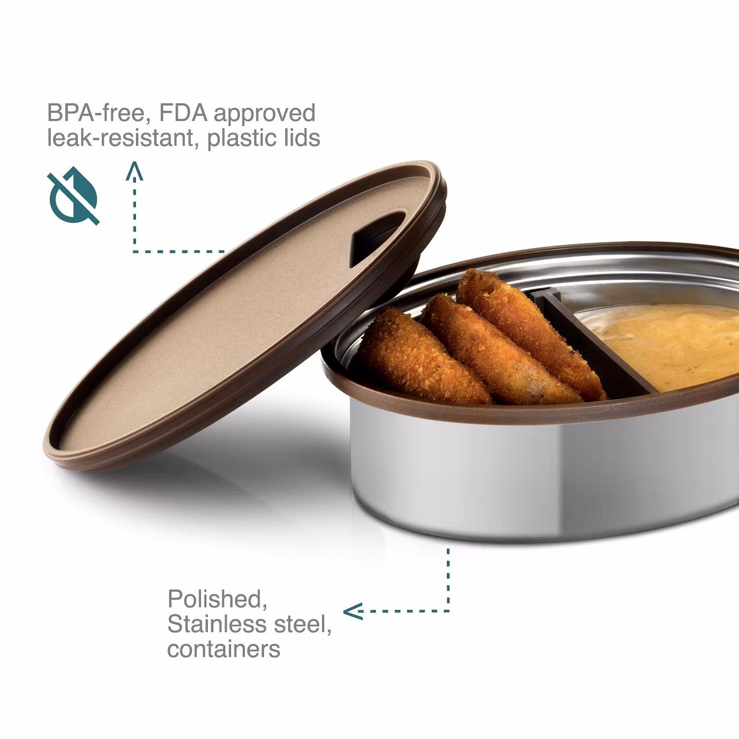 What's In The Box:- Two 300 ml Containers, Two Lids, Two Partitions, Base, a Vacuum Insulated Outer Shell; Colour: Graphite;, Material: Stainless Steel, Container: Polished, Shape: Oval, Capacity: 600 ml