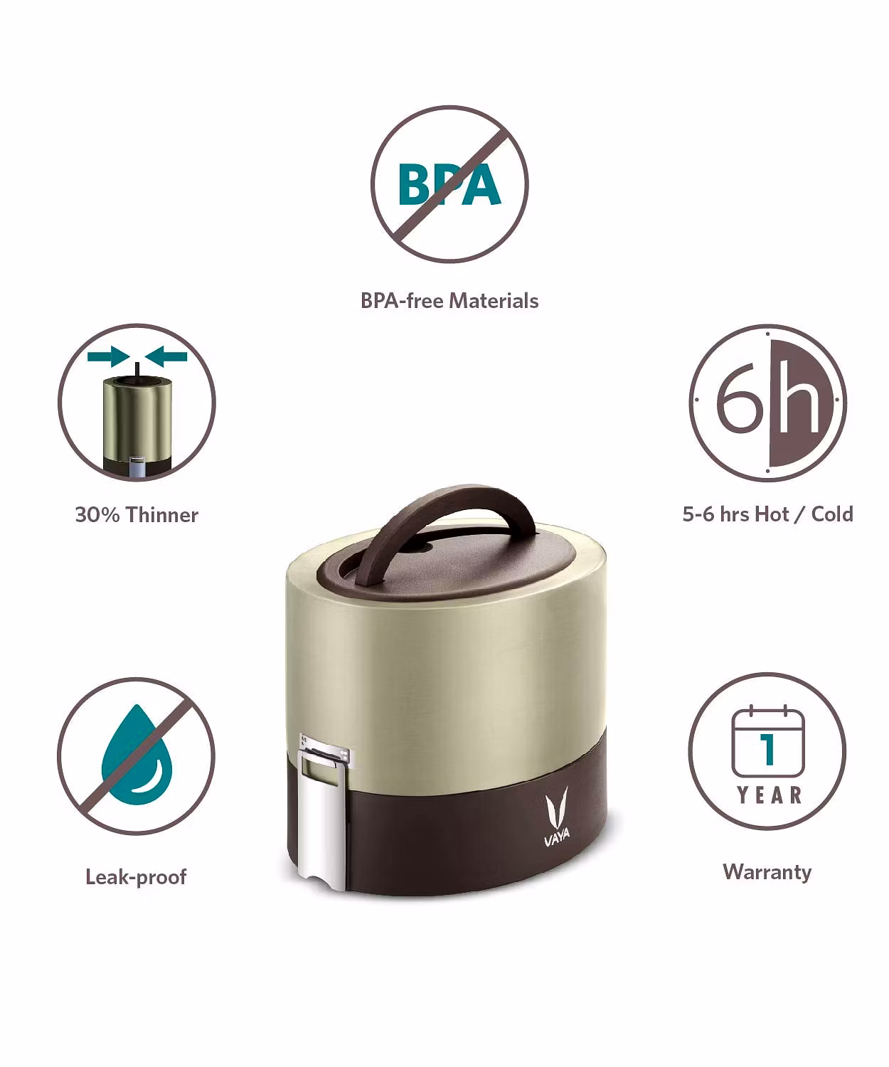 Keeps Food Fresh and Warm: Vaya's VacuTherm Technology keeps your child's food hot or cold for an impressive 5-6 hours, ensuring a satisfying meal even during long school days. The lunch box is designed with a convenient collapsible handle, making it easy for kids to carry. Its slim stainless steel body fits comfortably into any bag, ensuring a hassle-free and stylish lunchtime