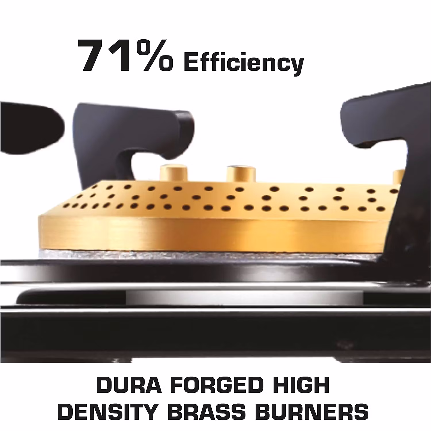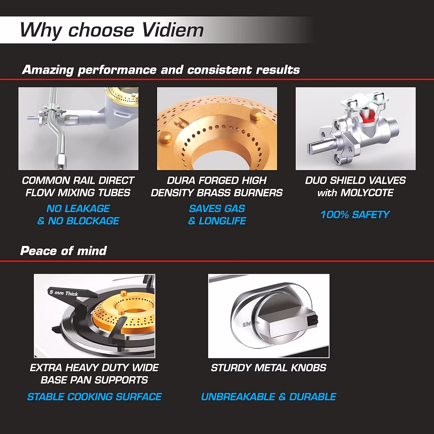 ? Vidiem Tusker 2mm High Gloss SS Body , Extra Large Cooking Surface & Widely Spaced Burners to accommodate Large Vessels with Jumbo, Medium & Small Dura Forged Brass Burners.