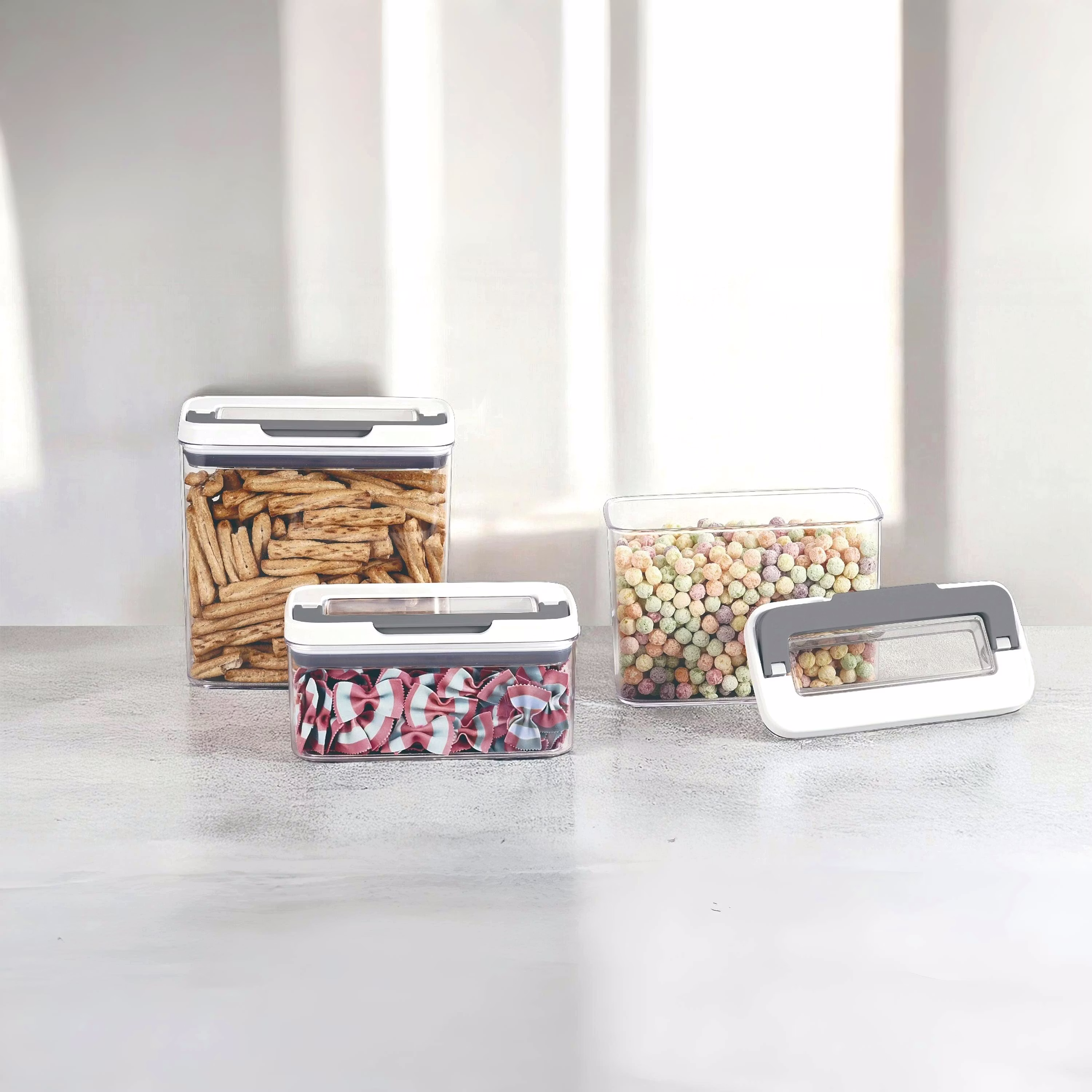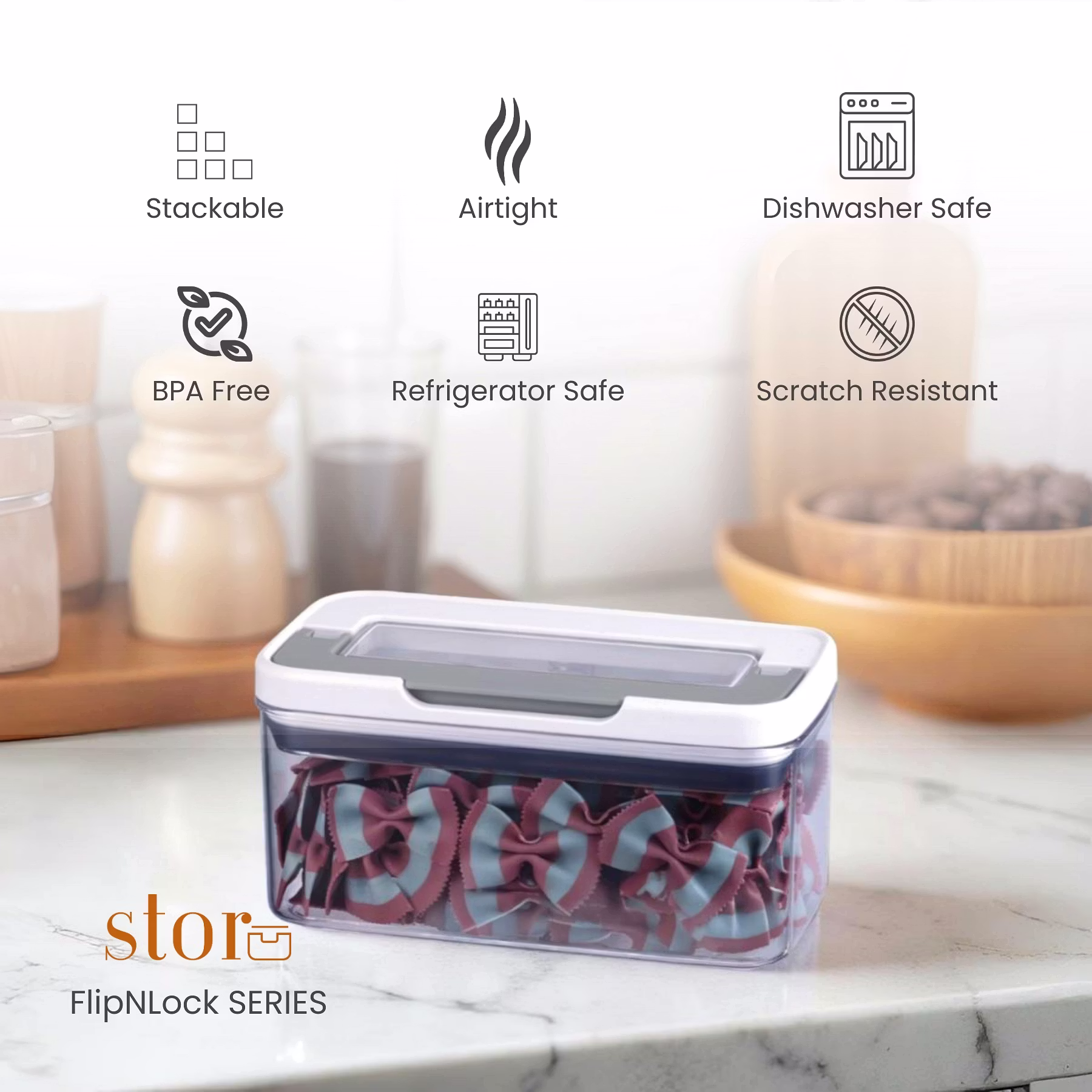 Keep your kitchen and pantry effortlessly organized with our airtight dry food storage containers, featuring a flip-and-lock lid mechanism for a secure seal. Designed for both style and function, they keep your ingredients fresh while elevating your storage game.